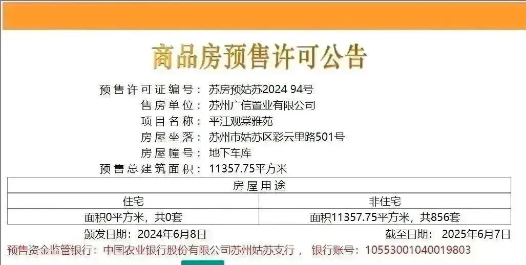 6月8日,姑苏区平江新城板块的天地源平江观棠856个车位取证!