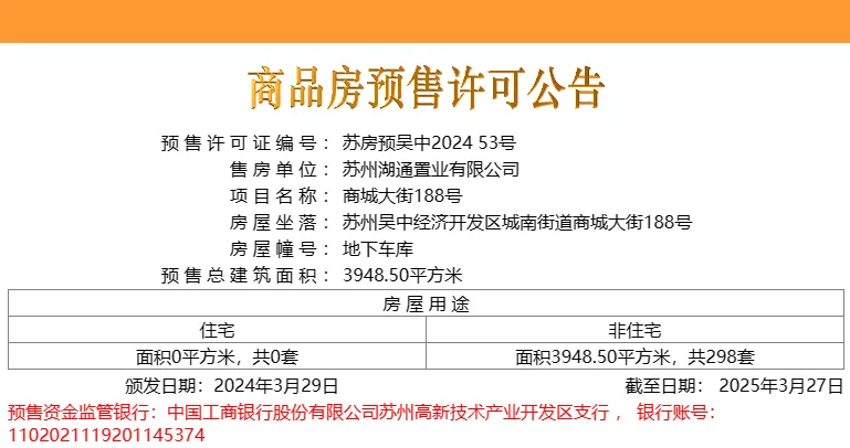 3月29日,吴中区城南板块的龙湖云河颂298个车位取证!