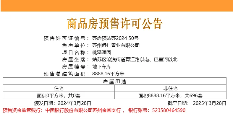 3月28日,姑苏区胥江板块的桃溪澜园696个车位取证!