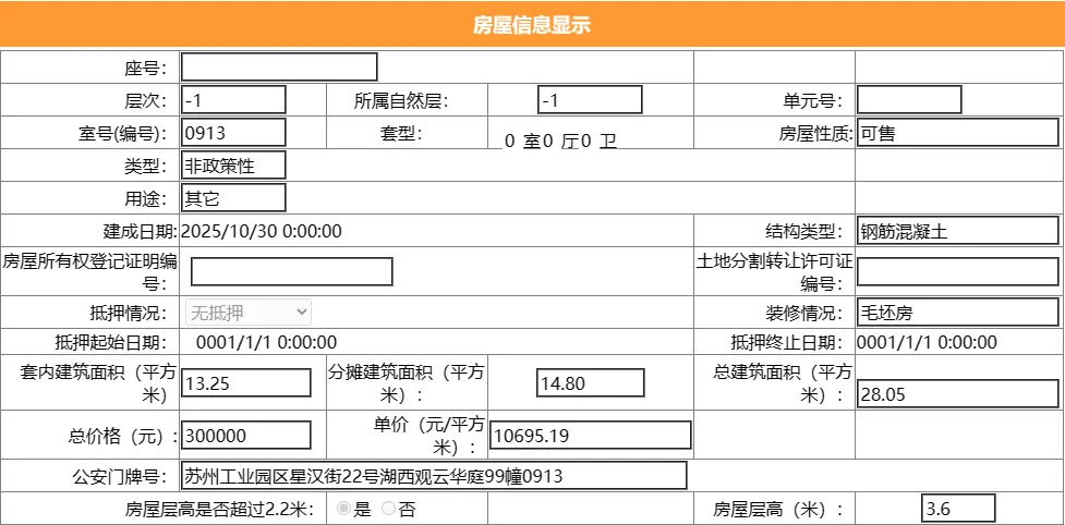 其车位总建筑面积28.05平,套内建筑面积13.25平,备案均价10695.19元/平,备案总价30万元。