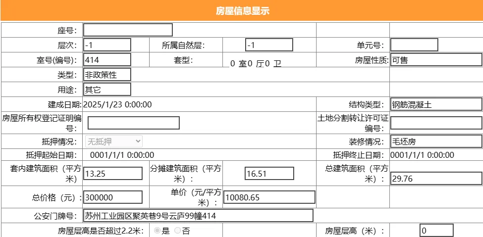 其部分车位总建筑面积29.76平,套内建筑面积13.25平,备案均价10080.65元/平,备案总价30万元。