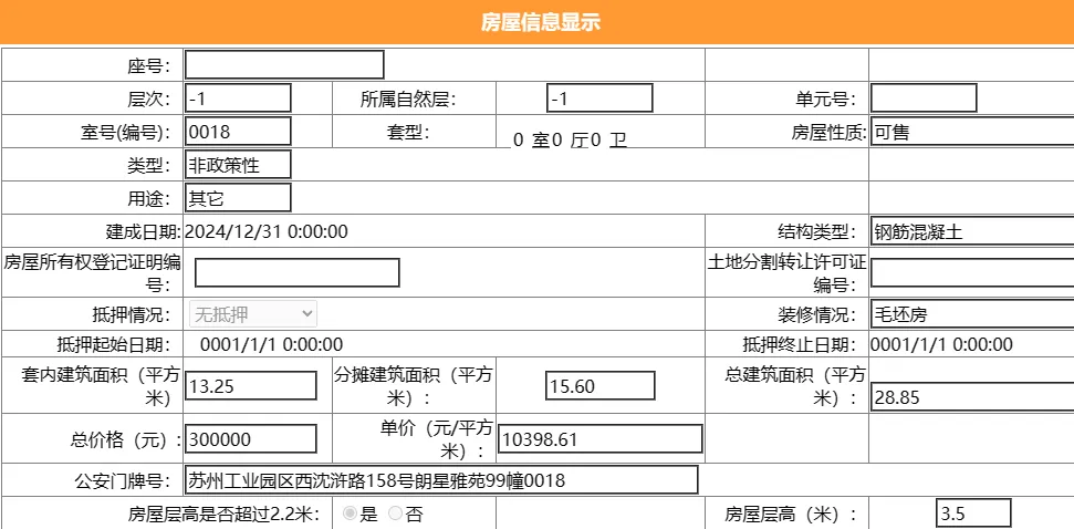 其部分车位总建筑面积28.85平,套内建筑面积13.25平,备案均价10695.19元/平,备案总价30万元。