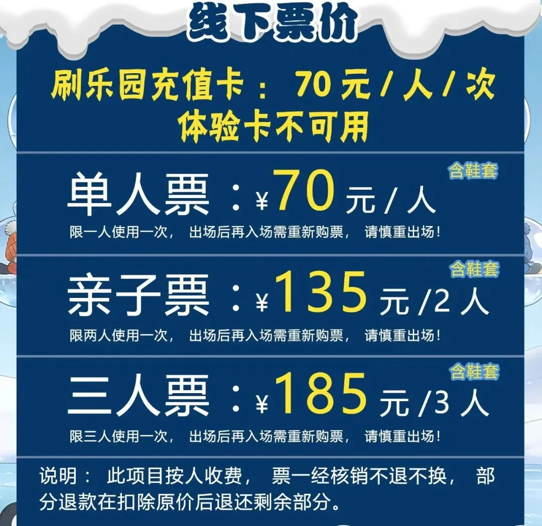 乐园充值卡也可以当冰雪门票使用哦,现场刷卡按照70/人/次;