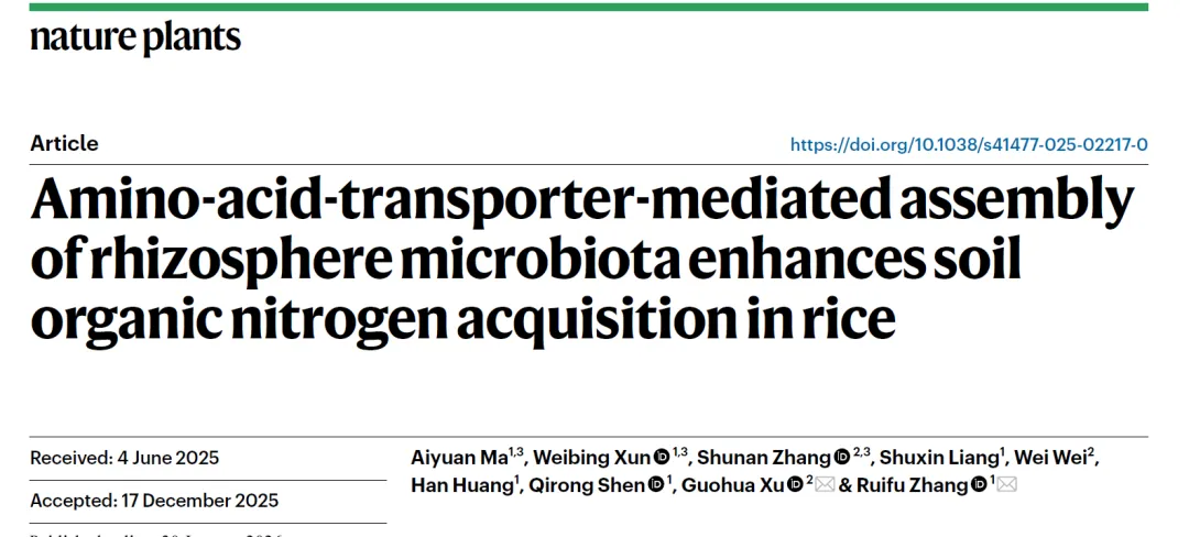 文献解读 | 南京农大沈其荣院士团队张瑞福教授课题组与徐国华教授团队合作揭示了有机养分高效利用的协同机制