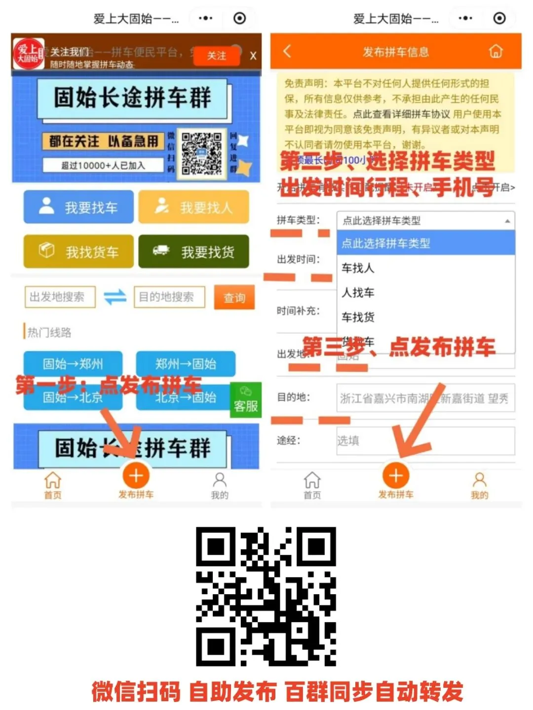 ✅让更多固始人看到并加入你的拼车