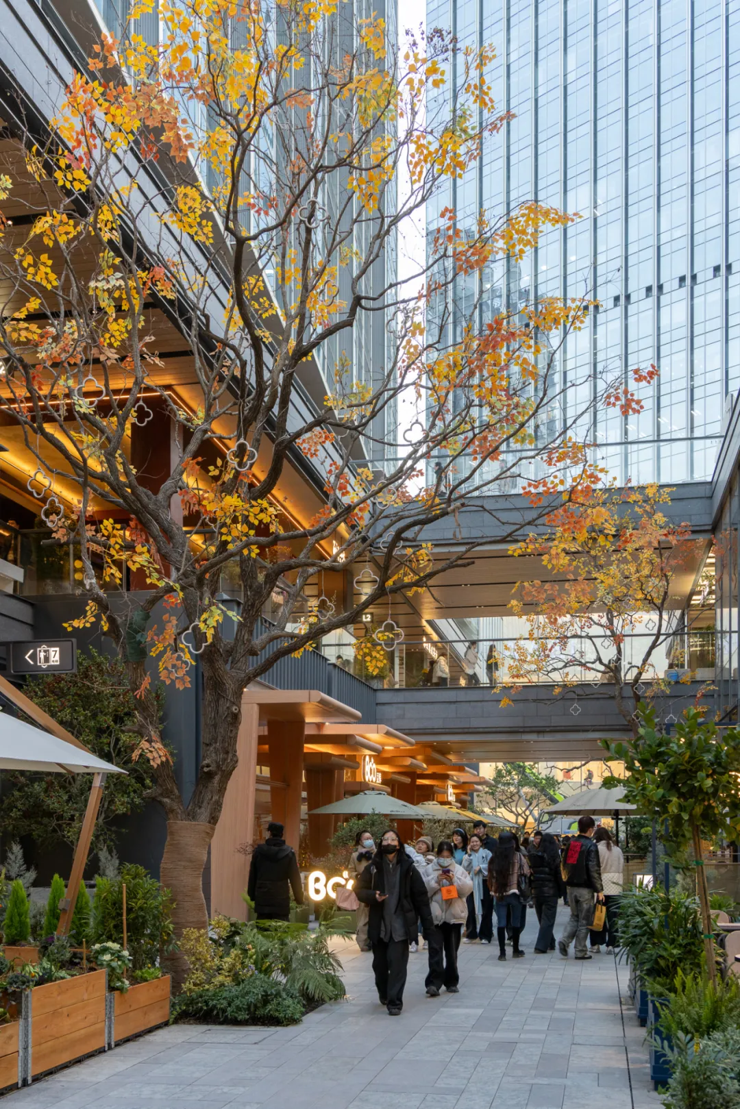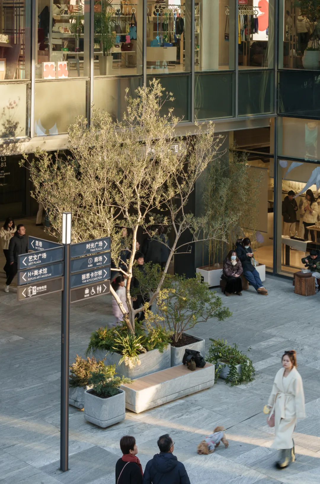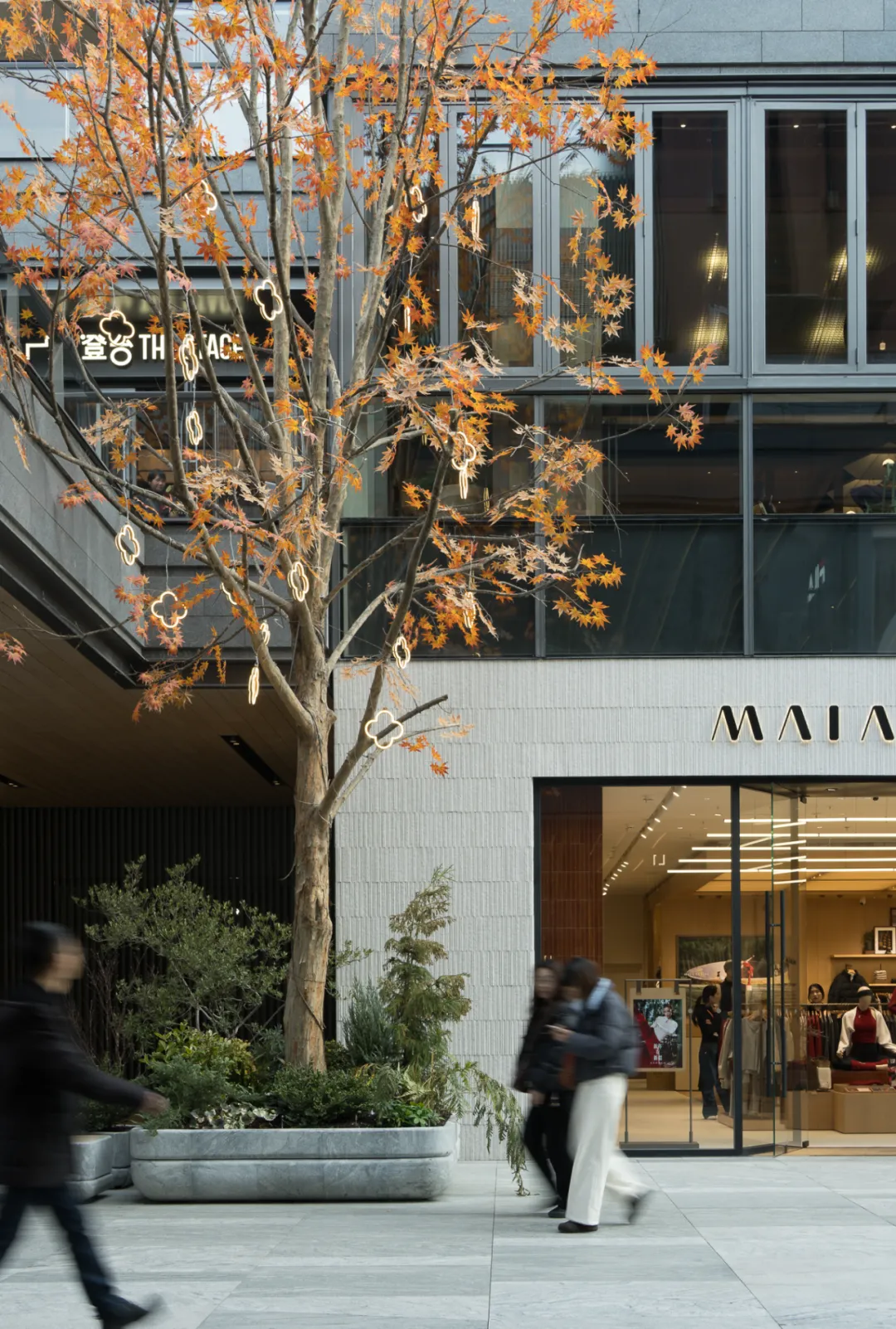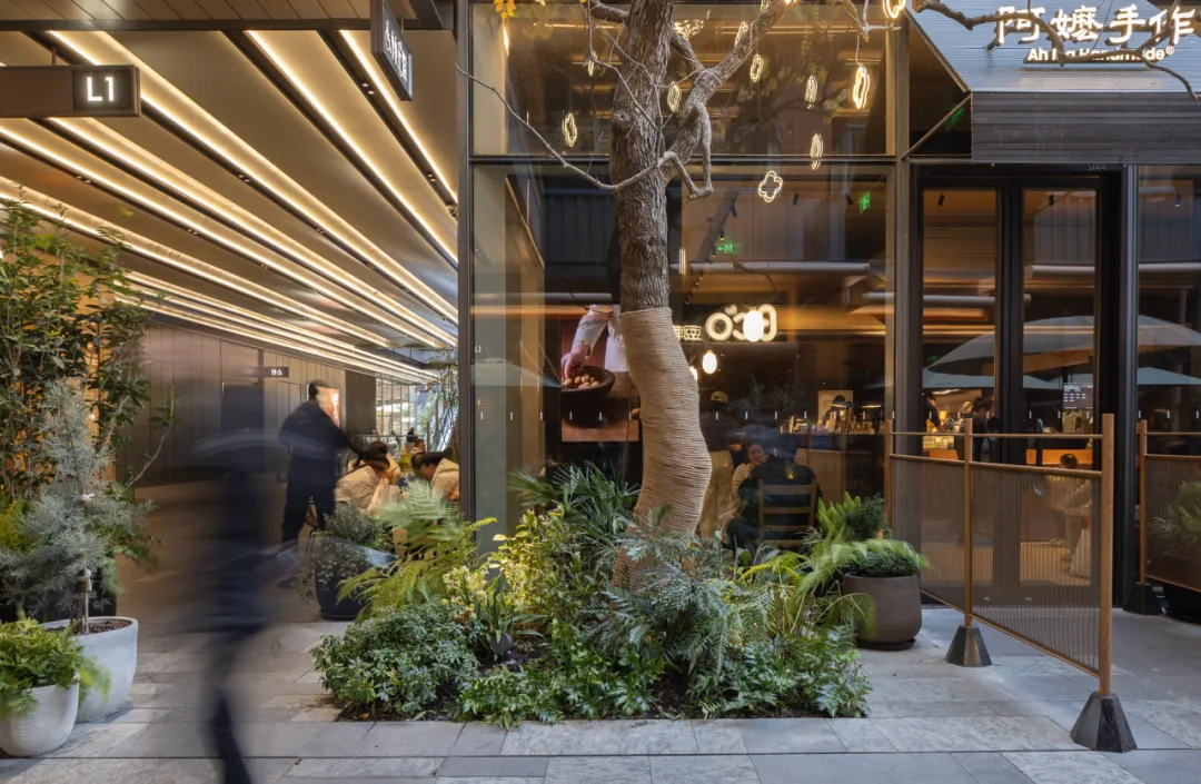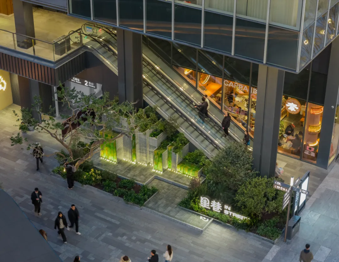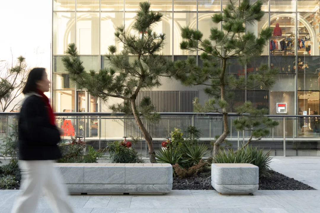 这种种植方式,延续了苏州园林中常见的植物组织逻辑,却以更克制、开放的方式融入当代商业街巷。
