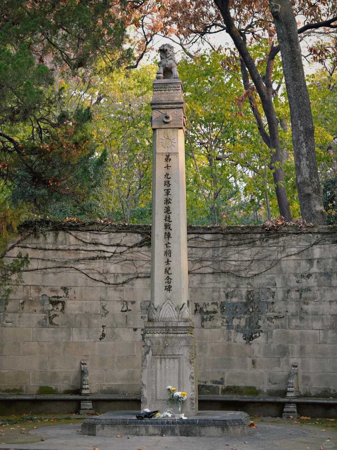 眼前这块,是第十九路军淞沪抗战阵亡将士纪念碑;那一块,是第五军阵亡将士纪念碑。