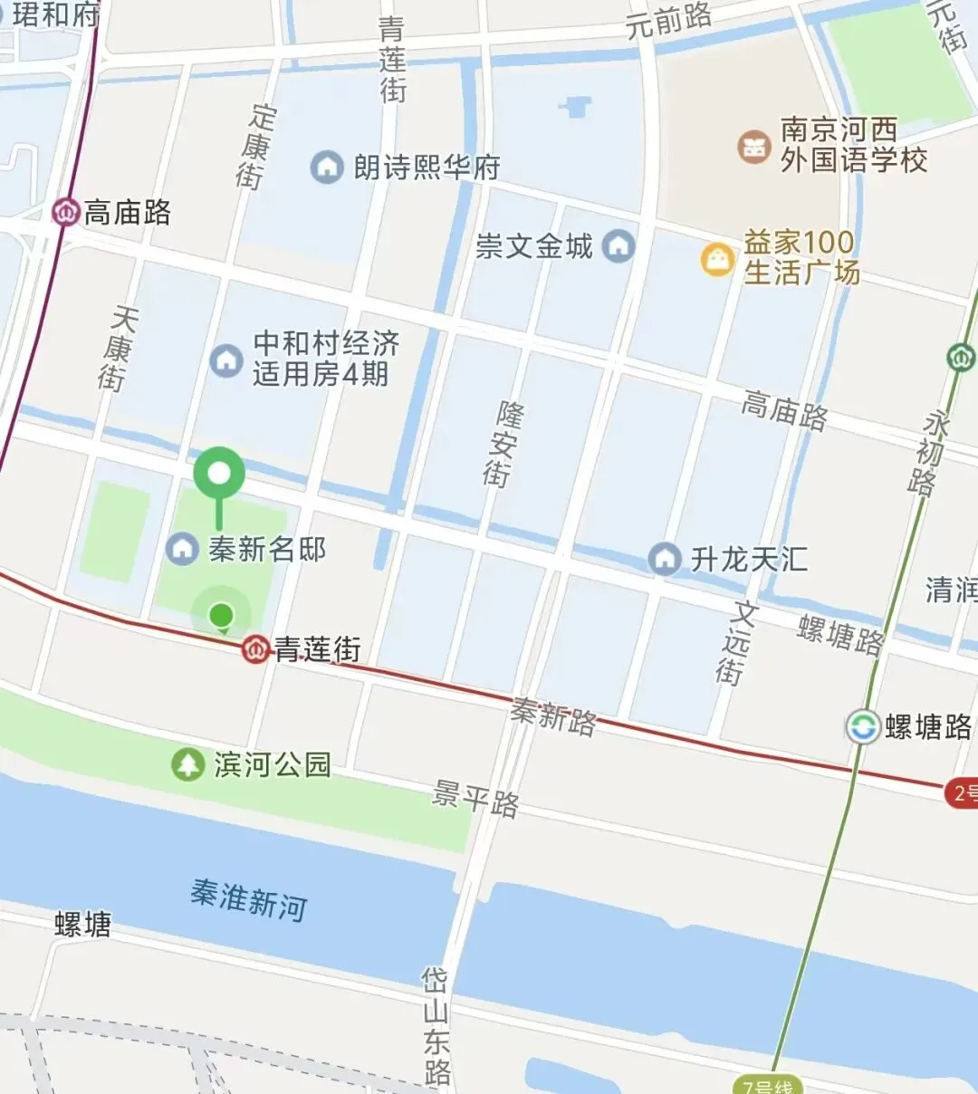 ·地铁 2 号线青莲街站 200m:2026 年已完全兑现,通勤河西 CBD(4 站)、新街口(6 站)效率极高,南京二手市场对“200m 内地铁盘”有明确溢价。