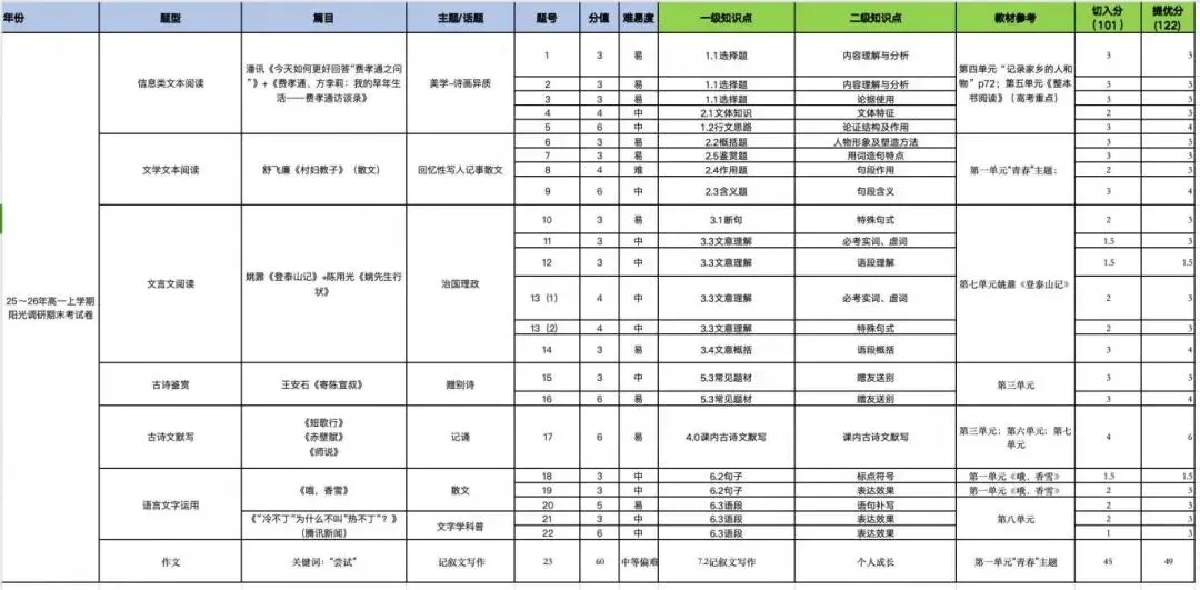 难度分析,仅供参考:高一年级语文这次考得很简单,切入分应该要有101,冲211和985的学生应该要考122分左右。