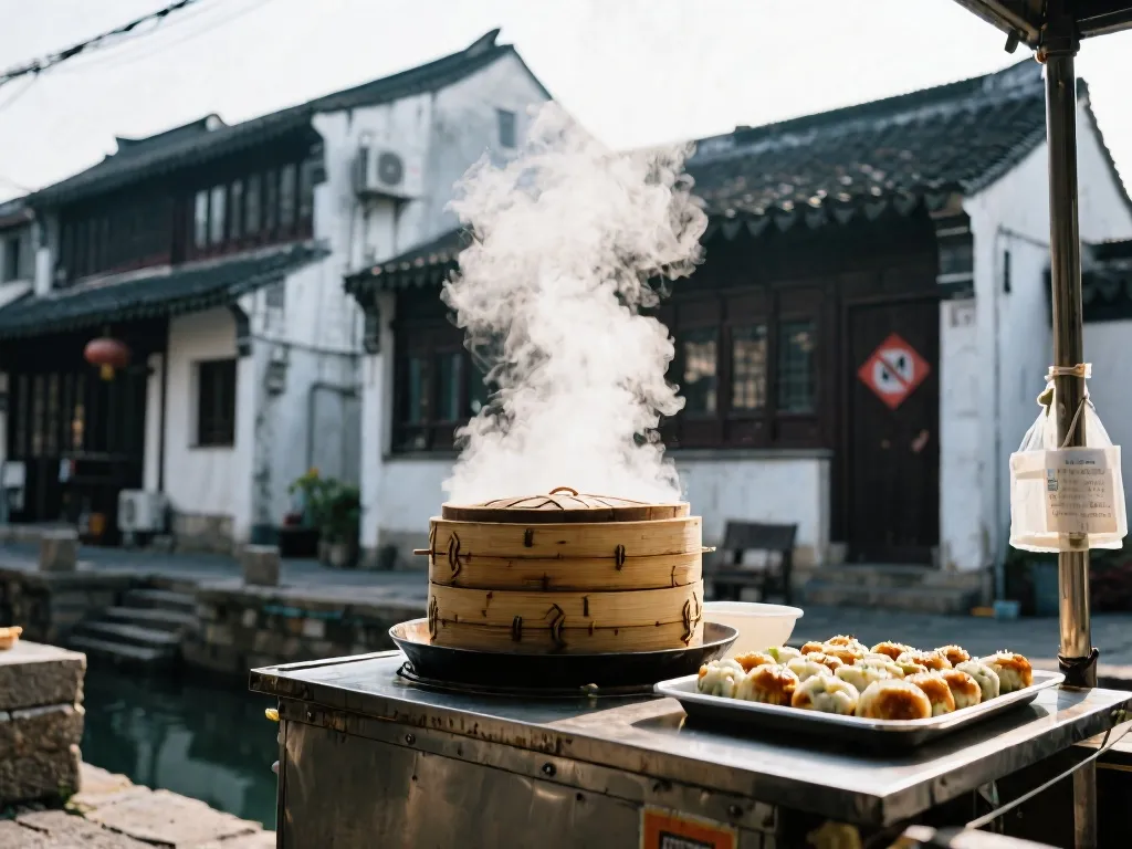 吃刚出锅的哑巴生煎有讲究,得记住“轻轻提,慢慢移,先开窗,后喝汤”。先用筷子在顶部戳个小口,嘬尽滚烫鲜甜的汤汁,再吃鲜嫩肉馅和松软面皮,最后啃焦脆的底部。地道吃法是配香醋和姜丝解腻提鲜。现在苏州有多家分店,临顿路店近观前街,带复古感但游客多要排队;苏安新村总店保留市井味,深受老苏州青睐。