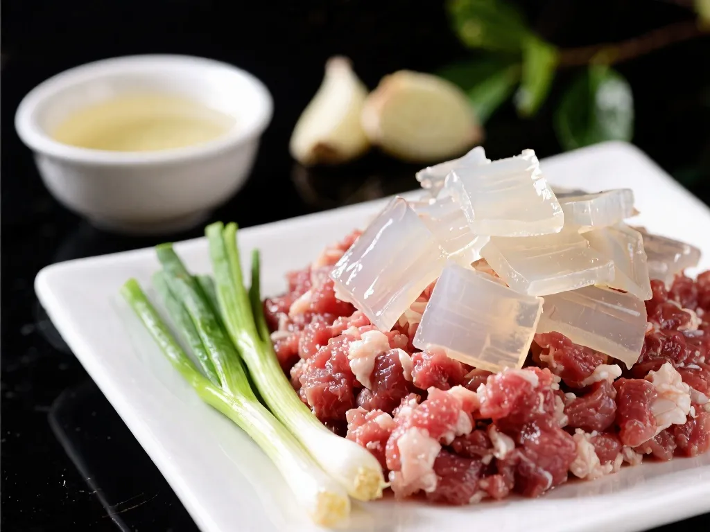 爆汁的核心全在肉皮冻。把猪皮焯水去腥,和葱姜、黄酒一起小火慢熬数小时,熬成透亮的皮冻。冷却切碎后,按1:3的比例拌进肥瘦相间的猪前腿肉馅,肉馅要分次加葱姜水,顺时针搅拌上劲,再放酱油、黄酒、少许白糖——这是苏州特色的微甜口。