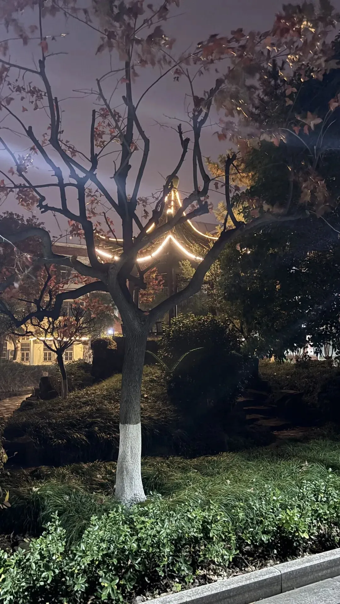 夜幕轻垂,校园里的小亭在灯光的勾勒下仿佛被赋予了柔和的光晕,安静却不孤单。树影在微风中轻轻摇曳,与亭下的青石小径一同将宁谧铺向远方。远处教学楼的窗格里,白色的灯光亮着,一帧帧专注学习的身影浮现其间,为夜色添上一份踏实与温暖。亭子的古韵与楼内的现代书声交织,形成校园独有的气息——既沉静,又充满生机。在这样的夜晚,景与人彼此成全,光与影共同织就一幅静美的校园夜景画卷。