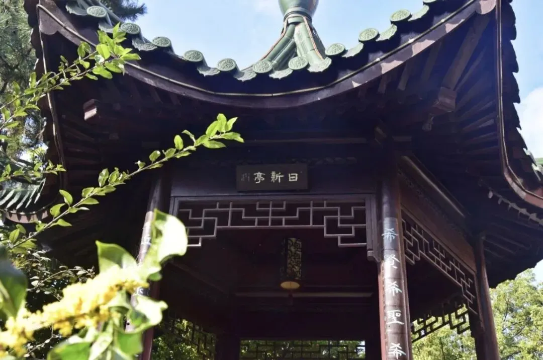 日新亭的黛瓦飞檐下,金桂正悄然盛放。细碎的金黄花瓣落在雕花木格上,混着清甜的桂香,与“苟日新,日日新”的古意撞了个满怀。
