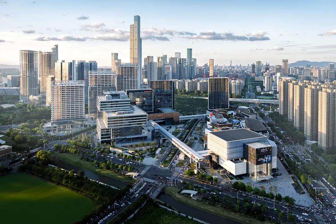 背靠金陵历史底蕴,以数字时代先锋科技大厂为载体,一座兼具未来感与生态责任感的建筑群在南京拔地而起。Benoy为这座总体开发量近90万平方米的南京阿里巴巴中心项目提供从前期总体规划直至各个园区内单体建筑全程建筑设计咨询服务。该项目不仅是阿里目前最大开发园区,也是Benoy与阿里巴巴集团携手合作的4个阿里项目中产业业态最丰富的一个。