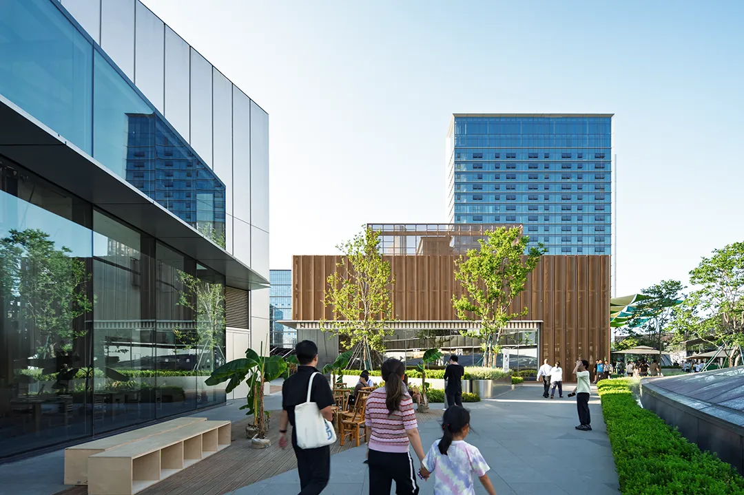 设计以“科技赋能生活,自然融入空间”为核心理念,从城市肌理、功能逻辑到绿色可持续,全方位打造出这座融合产业办公、生活社交、时尚商业于一体的复合型城市新地标,并重新定义当代园区设计的新高度 ——“人才聚集高地的一站式生态社区”。