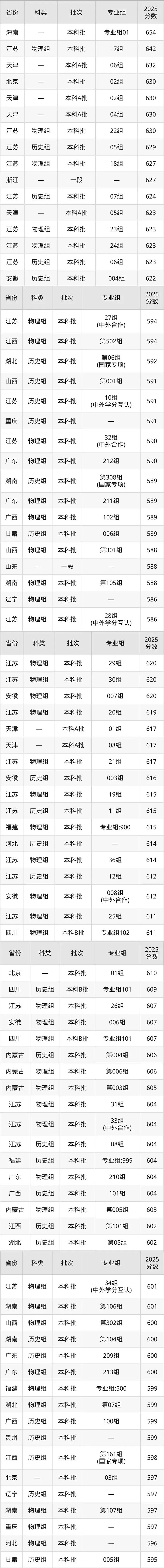 以下为南京师范大学2025年全国各省录取分数线一览表,供参考。