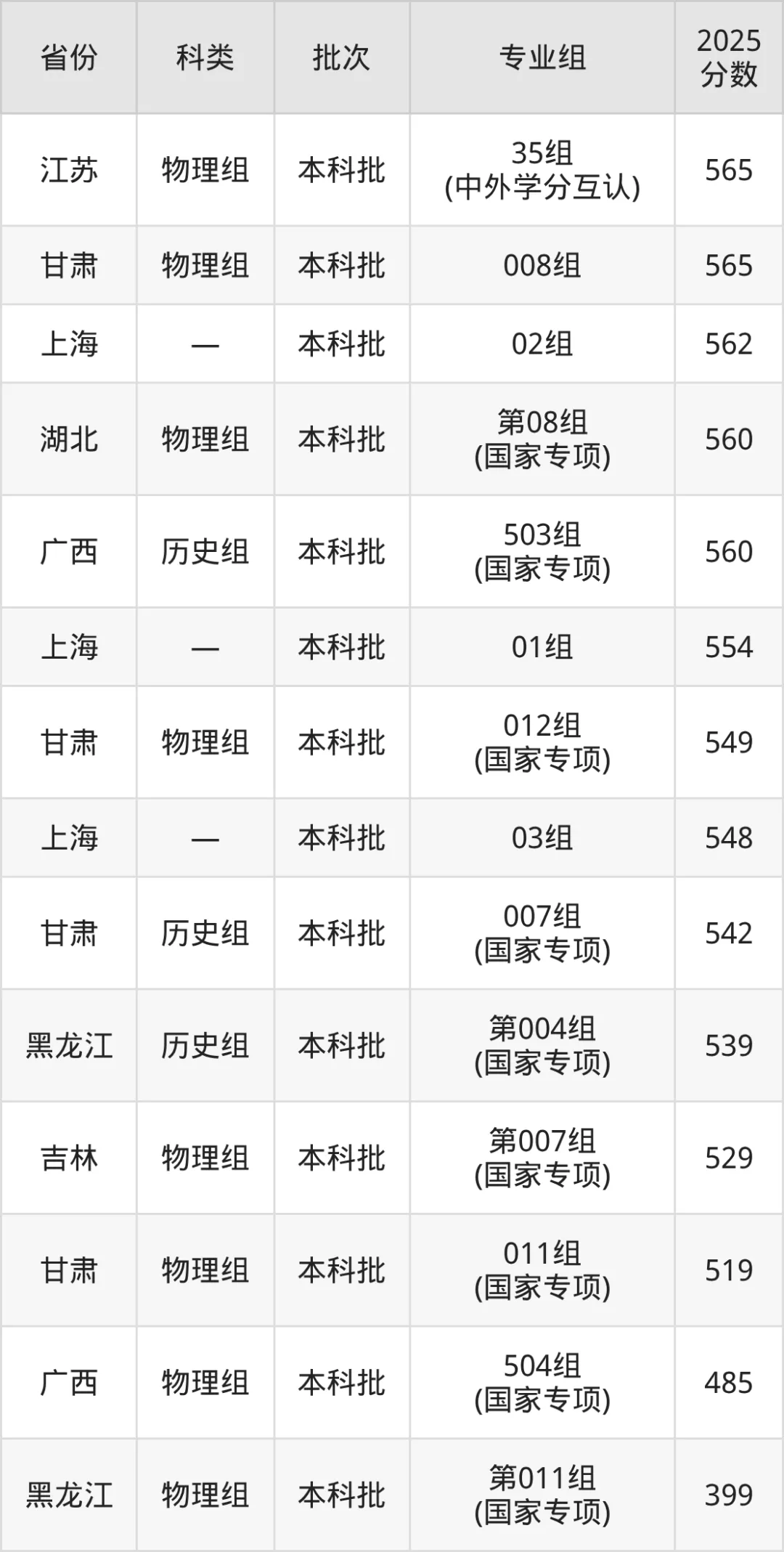 南京师范大学2025年在江苏的最低录取分为565分,该分数来自物理组中外学分互认项目,不同科类、专业组的录取分数存在明显差异。