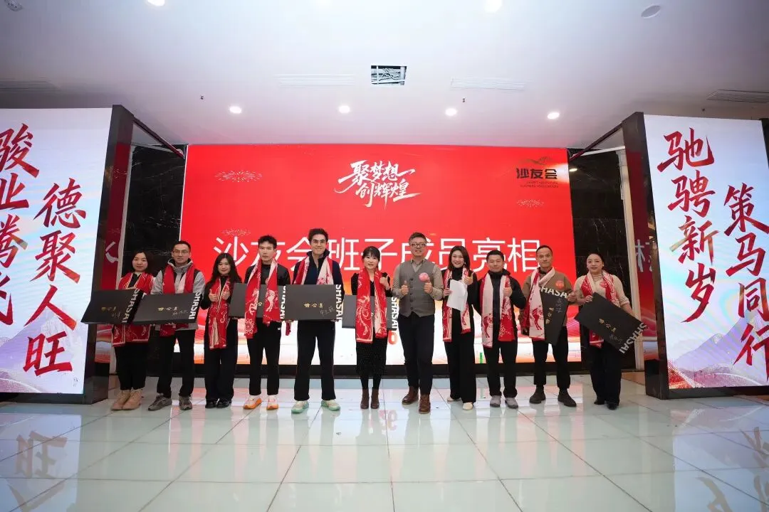 晚宴现场,南京沙友会班子成员集体亮相,他们是沙友会发展的核心力量,更是情谊的守护者。沙赛组委会高岩为班子成员发放专属“工作服”,并逐一佩戴象征新年祝福与团结力量的红色围巾,一抹抹亮色不仅温暖了全场,更凝聚起沙友会携手前行的决心。