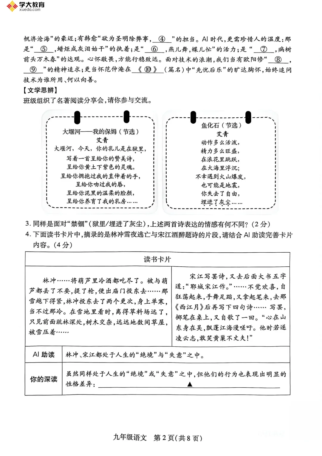 初三语文期末统考卷