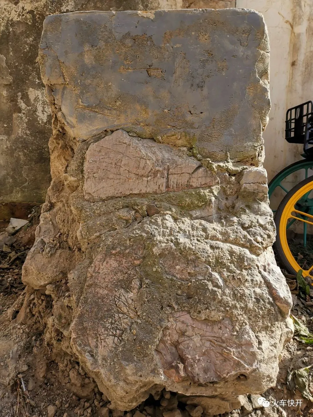 疑似为民国时期铁路附属建筑(库房或电线杆)的基础遗迹。摄于2021年1月19日