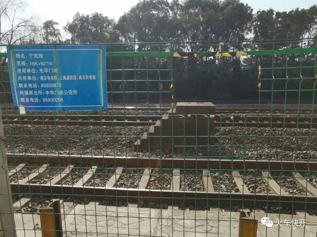 现光华门车站的位置信息牌K16+627,轨道中间台阶为原蒸汽机车时代路签交接用的授受机底座遗迹。摄于2021年1月19日