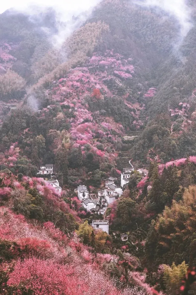 - 早餐后,我们前往『卖花渔村』游览。我们拾级而上,徒步到山中,更是视野广阔,白墙黑瓦的村落,被粉色、红色的梅林所围绕,成了中国立体山水画,美不胜收!