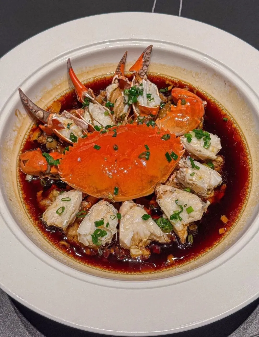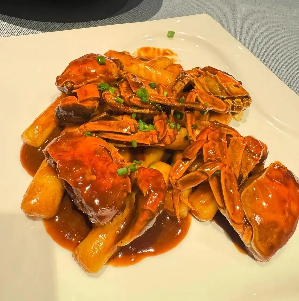 软糯的年糕吸饱了毛蟹的鲜汁与浓郁酱香