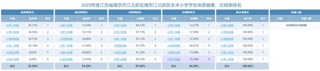>2025年江苏省南京市江北新区南京江北新区永丰小学学生体质健康、近视率排名