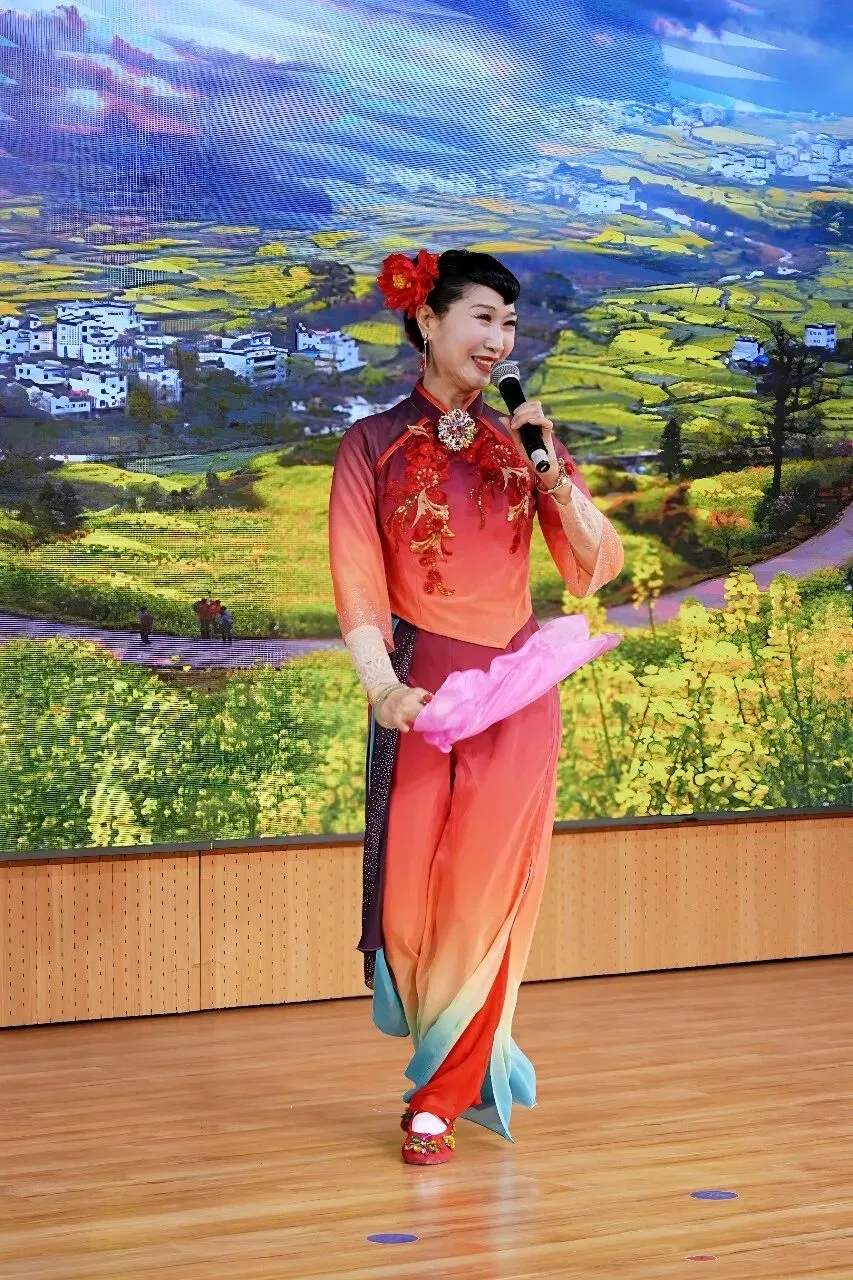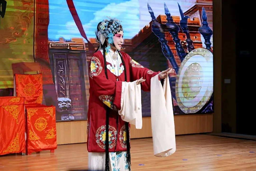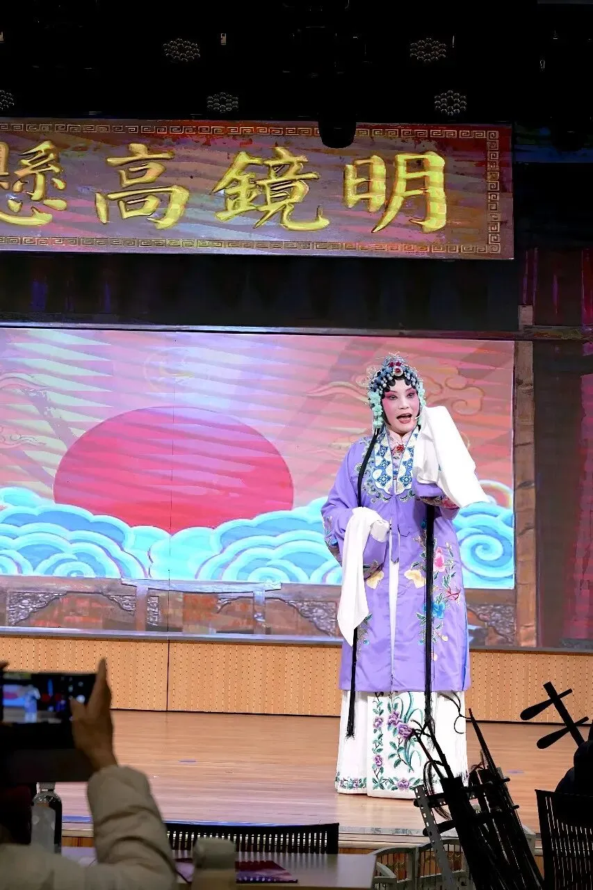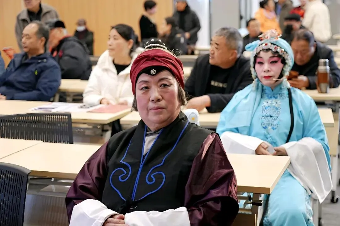 压轴戏是本场艺术指导司华老师的精彩唱段:《穆桂英挂帅》捧印,更是将现场气氛推向了高潮。演员中有两位国家一级演员,也奉献了自己的拿手曲目。沈玲老师的柳琴戏《走娘家》与葛爱老师的豫剧《朝阳沟》选段,精彩的唱功和灵动的台风让台下观众听得如痴如醉,赢得全场热烈掌声。