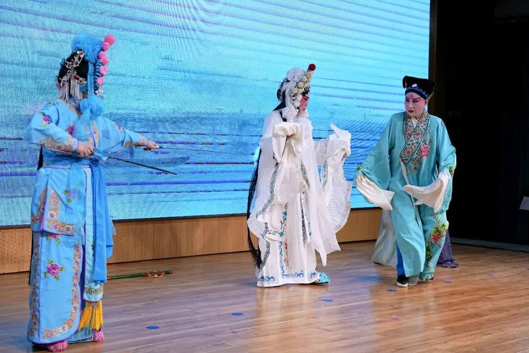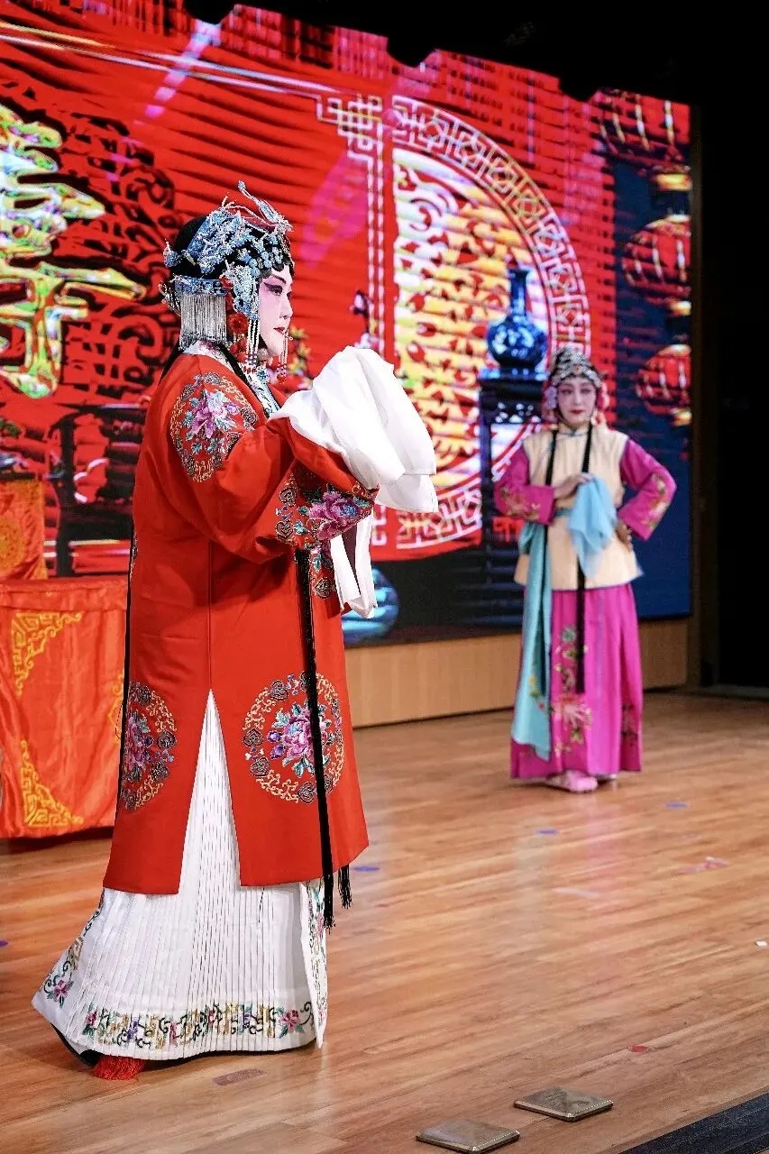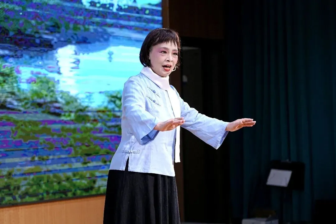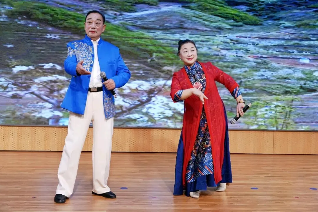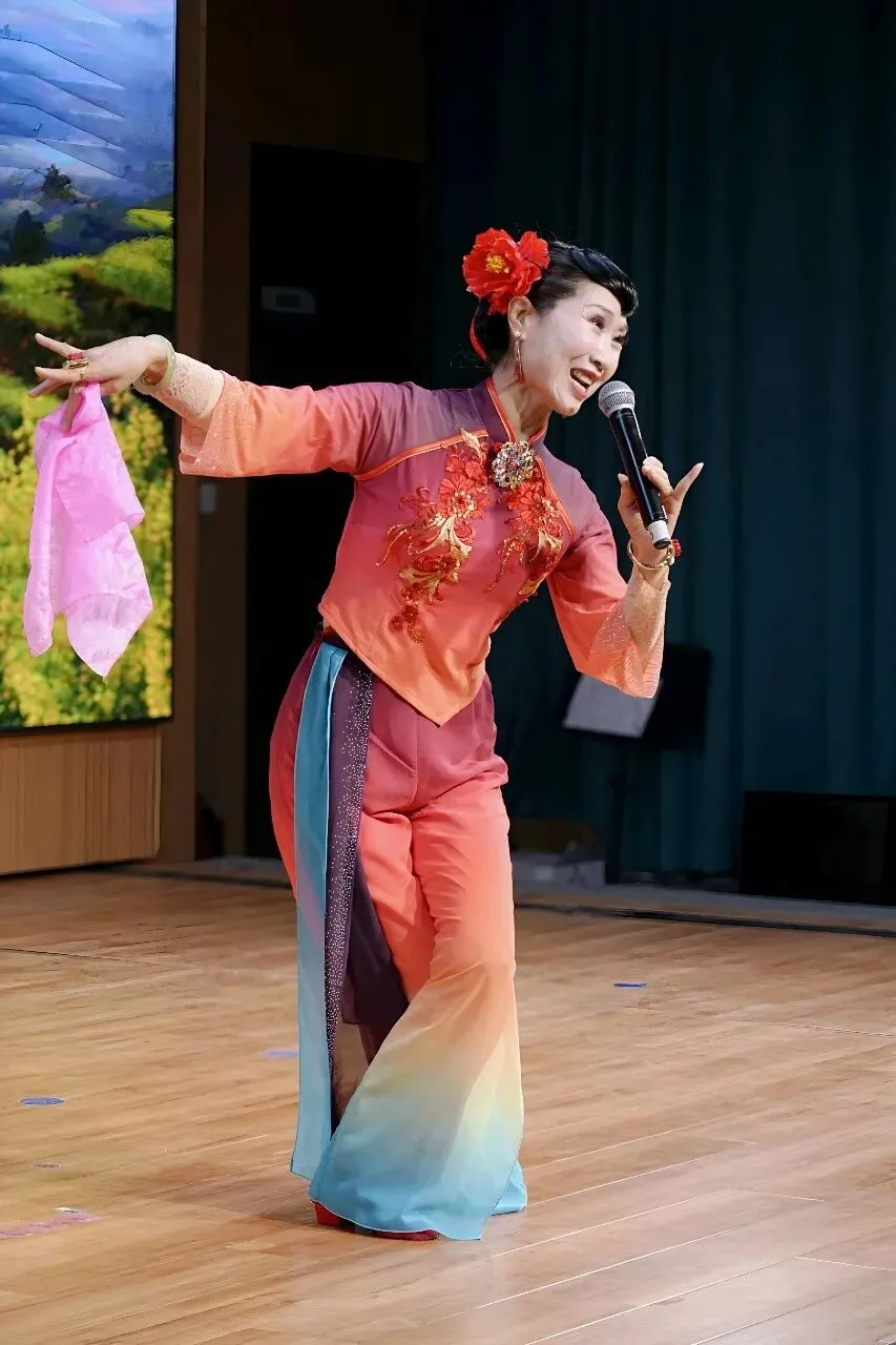 压轴戏是本场艺术指导司华老师的精彩唱段:《穆桂英挂帅》捧印,更是将现场气氛推向了高潮。演员中有两位国家一级演员,也奉献了自己的拿手曲目。沈玲老师的柳琴戏《走娘家》与葛爱老师的豫剧《朝阳沟》选段,精彩的唱功和灵动的台风让台下观众听得如痴如醉,赢得全场热烈掌声。