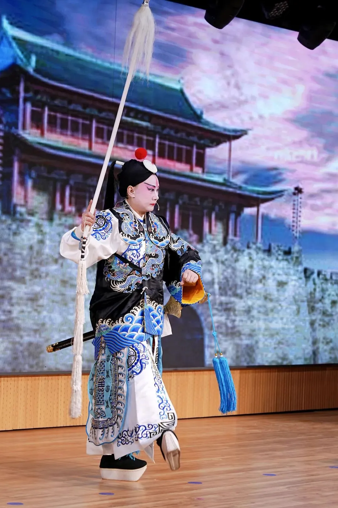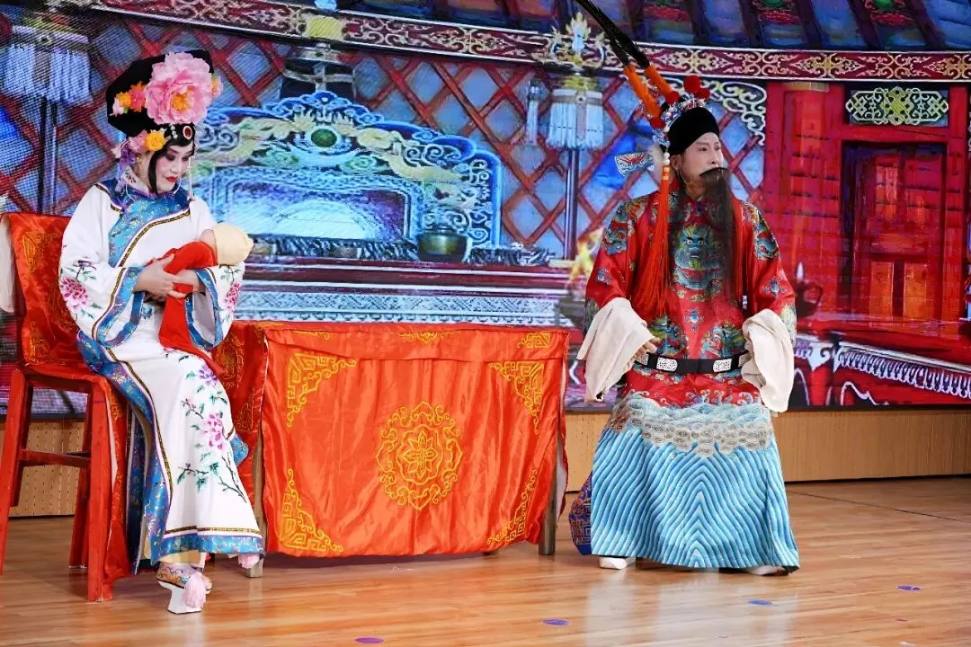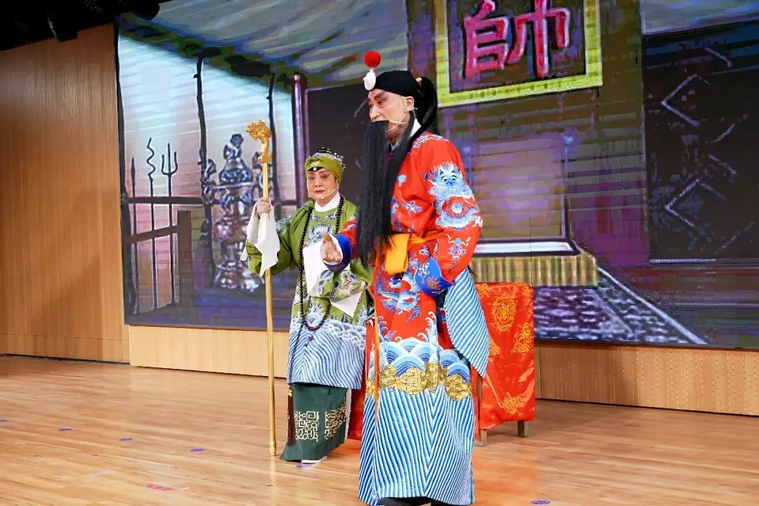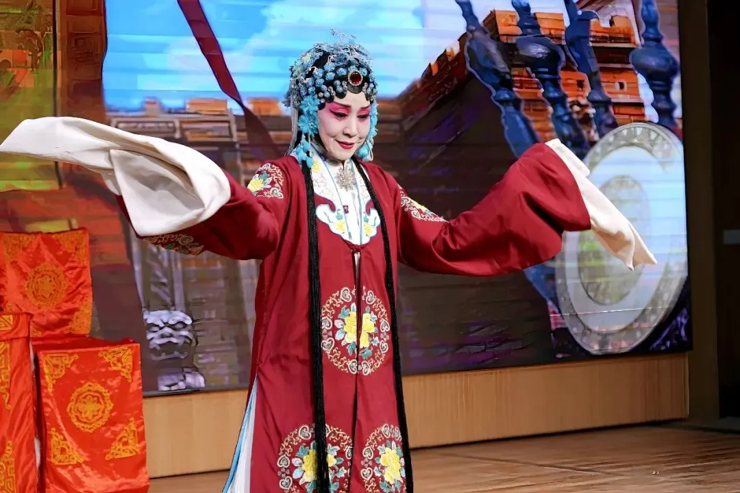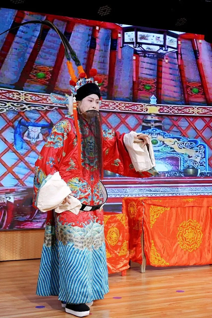 本次演出聚集了戏曲协会几十名常演骨干力量,涵盖京剧、柳琴戏、豫剧等多个经典剧种。传统曲目《凤还巢》《四郎探母》《白蛇传》《坐宫》《杨门女将》等与现代京剧《红灯记》《智取威虎山》《海港》轮番上演。舞台灯光璀璨,大屏幕背景贴合剧情变幻如诗如画。