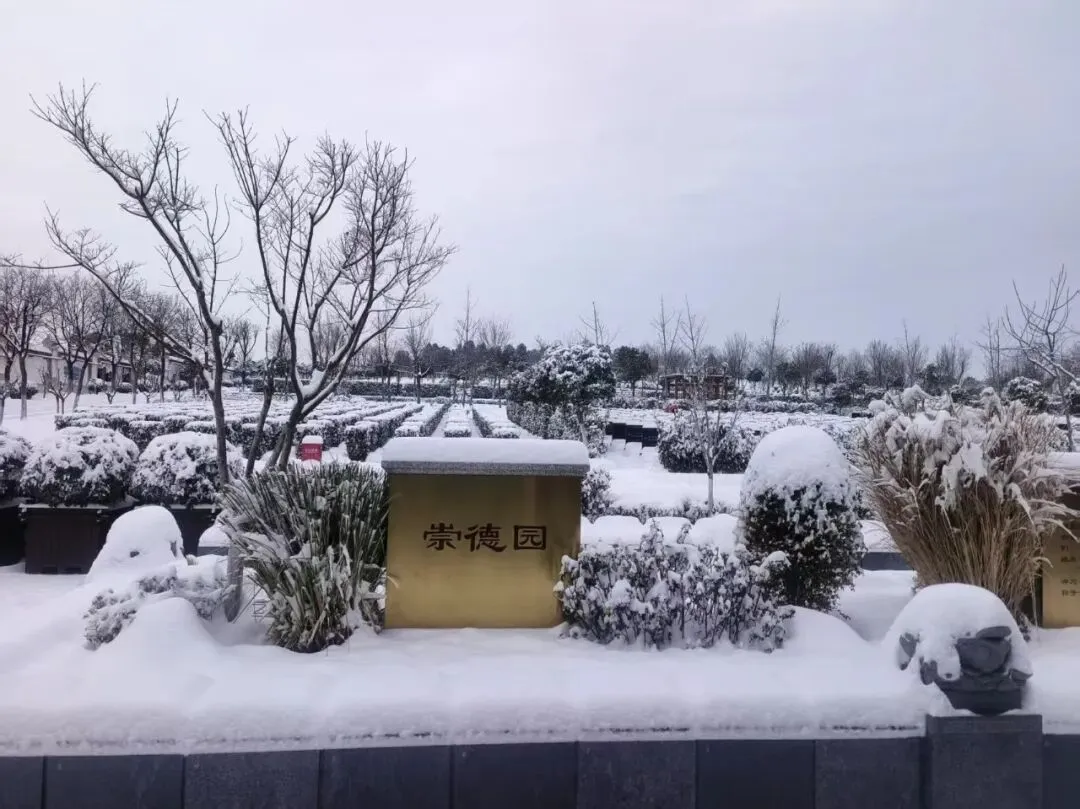 雪落无言,凝安成景。白雪为张集公墓管理所的冬日绘就了一幅素雅静美的画卷,在纯粹的白与静中,让每一份思念都有了温柔的归处。