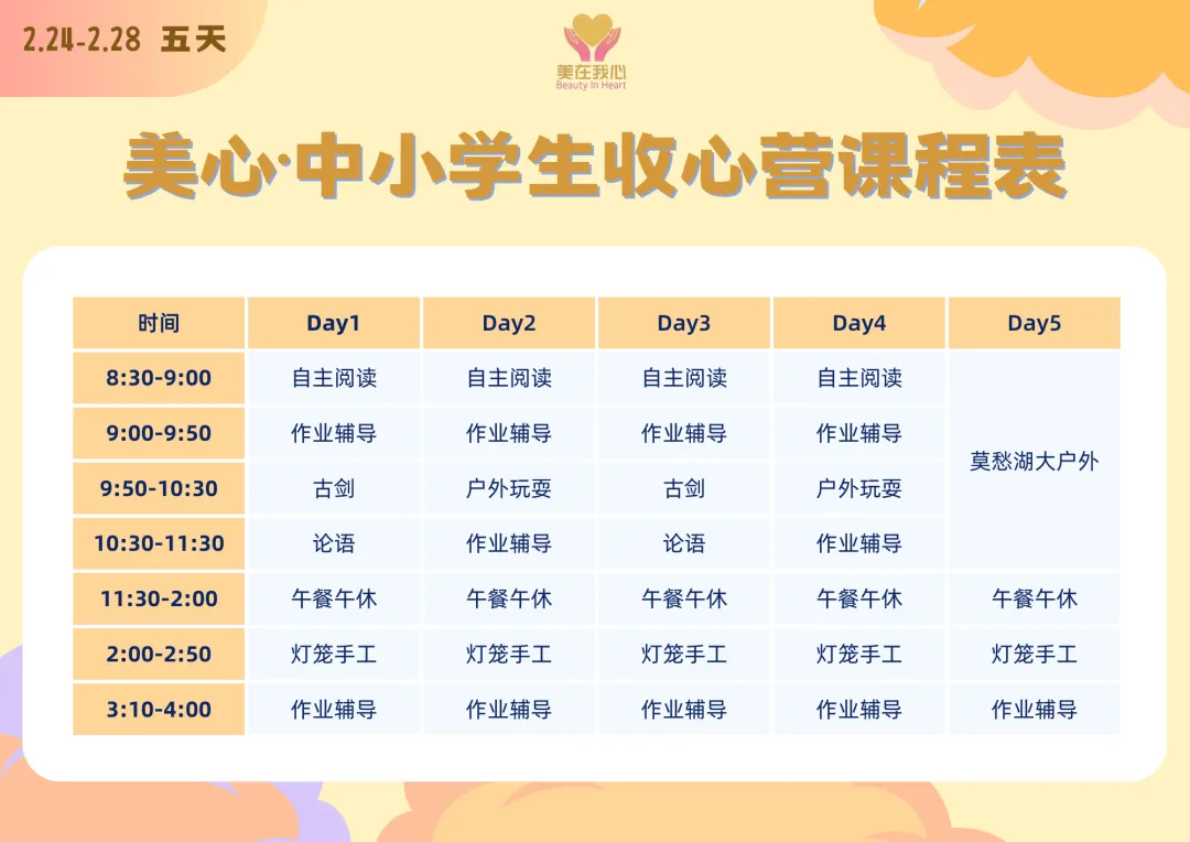 ✅ 课程表速览|劳逸结合、身心稳固!