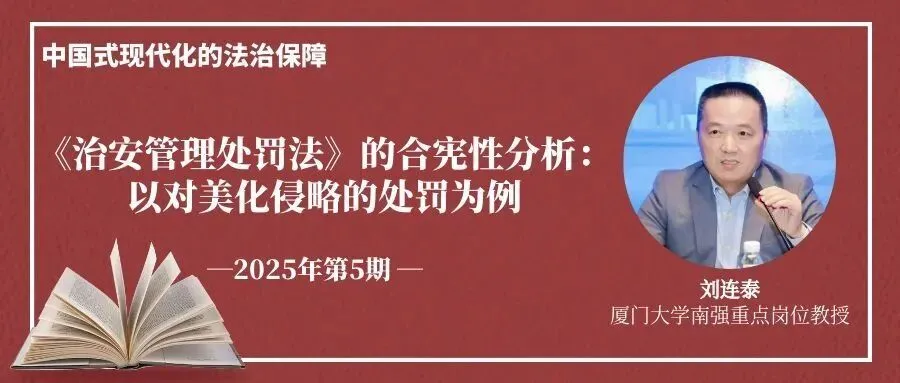 2025年第5期,《中国式现代化的法治保障》栏目诚邀胡玉鸿教授撰稿,就民生这一中国自主法学知识体系的标识性概念作了系统性阐发,具有重要的理论创新性与研究指引价值。此外,本期栏目设专题笔谈,邀请沈岿教授、刘连泰教授与赵宏教授围绕新《治安管理处罚法》适用中的重点问题发表看法,其中,沈岿教授阐述了违法记录封存的进步性,并设计了其系统兑现路径,具有重要的实践参考价值;刘连泰教授从合宪性角度进行分析,对美化侵略处罚条款予以重点讨论,对新修订法的合宪性进行了理论证成;赵宏教授则围绕正当防卫在治安管理处罚法中的纳入与具体展开,对正当防卫制度的落实提出了建议与期待。《中国检察学自主知识体系研究》栏目邀请刘加良教授、陈海嵩教授、段厚省教授,围绕检察公益诉讼立法争议问题展开讨论,其中,刘加良教授对检察机关在公益诉讼中的身份定位进行研究,提出了公益代表人身份的入法方案;陈海嵩教授就检察公益诉讼的二审启动方式发表了看法;段厚省教授围绕相关法律条文,对检察民事公益诉讼的举证责任进行了分析,对法条修改提出了建议。《法学基本概念和基本范畴》栏目组织了刑法法益问题研究专题,刊发了冀洋教授对刑法中法益保护目的正当性审查的研究文章,罗鸿燊助理教授就毒品犯罪公共健康法益之重构的研究文章,以及德国学者乌尔弗里德·诺伊曼与弗兰克·萨利格关于人的法益理论的经典译作。《数据法治》栏目刊发了“自动驾驶汽车个人数据”“数据出资”两篇主题文章。《法治实践前沿》栏目四篇文章分别就“反垄断法视野下忠诚折扣违法性认定”“专利侵权所失利润赔偿计算的规则”“破产和解制度”“合宪性推定的理论”等主题进行研究。《域外译文》栏目刊发了德国著名法学家卡尔·拉伦茨的《法律义务问题》的经典译作。