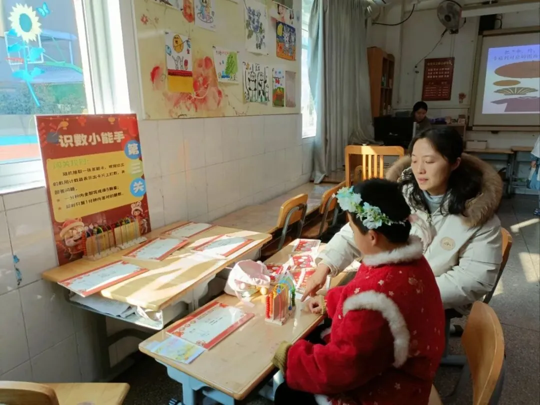除了语文的四季之旅,本次活动还设置了数学闯关环节——“识数小能手”。孩子们随机抽取数字答题卡,迅速使用计数器表示出相应数量,并在一分钟内流畅回答问题。这一环节不仅考察了孩子们对数字的理解与表征能力,更锻炼了他们的反应速度与手脑协调性,在紧张有趣的倒计时中激发数学思维的火花。
