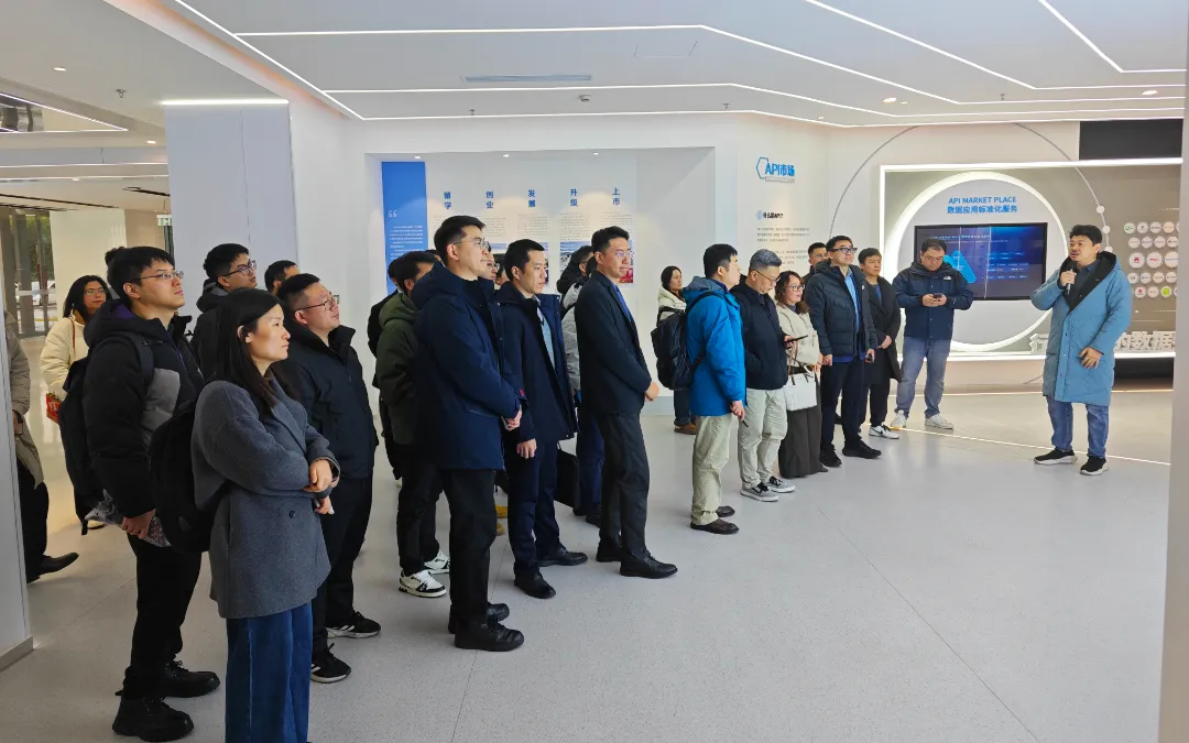 与会嘉宾走进天聚地合展厅进行参观了解,详细了解企业发展历程、核心业务布局及技术创新成果,近距离感受其在隐私计算、区块链、AI大模型等领域的前沿数据应用技术,直观感受企业在数据智能领域的深厚积淀与创新实力。