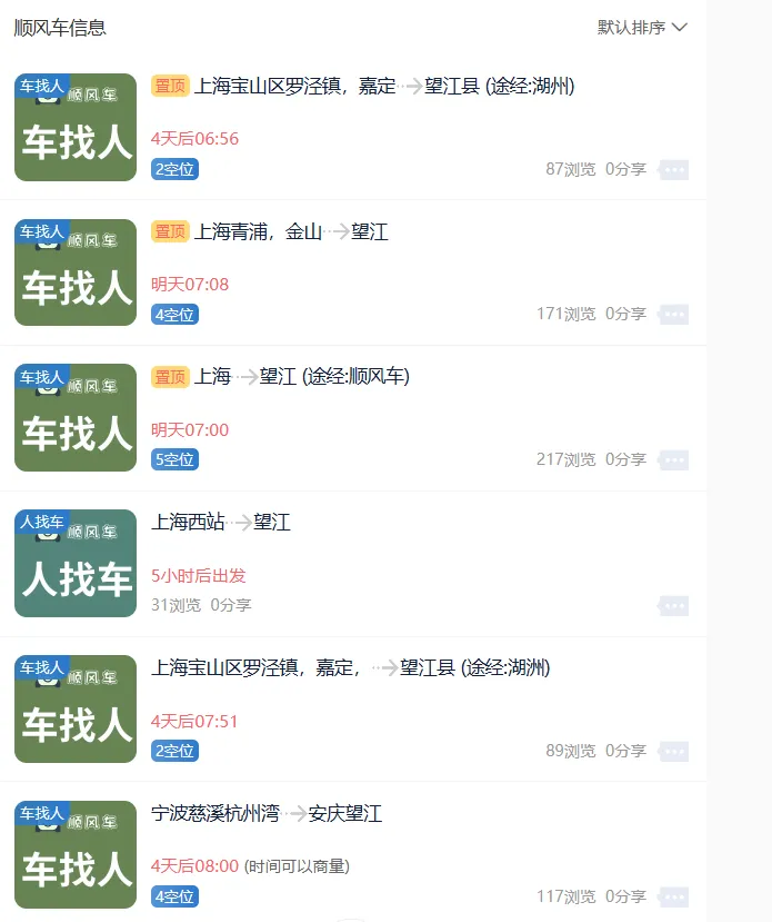 在望江论坛在线发布拼车信息