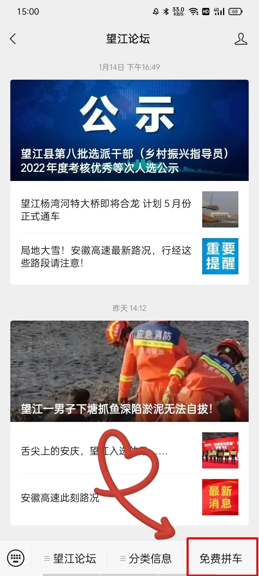 即可进入望江论坛拼车群