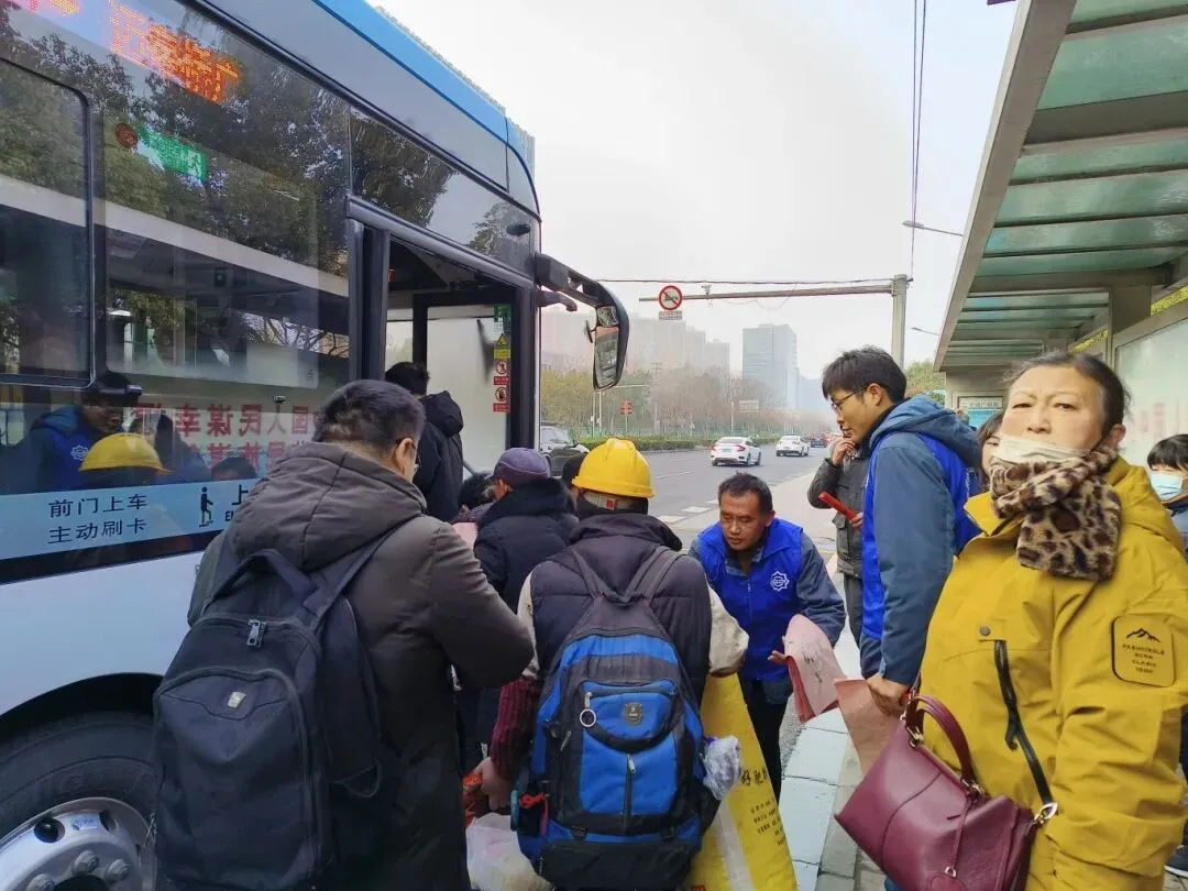 同时南京公交624路驾驶员、全国五一劳动奖章获得者张兵,带领劳模工作室成员来到棠城广场东公交站开展志愿服务,成员们主动上前搀扶、帮忙提拿,用行动传递温暖。