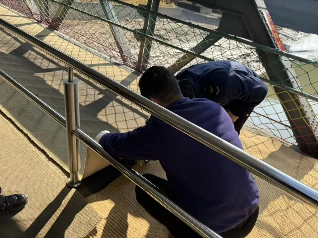 在栈桥铺设防滑地毯,客舱楼梯扶手包裹毛绒套,为乘渡增添一份暖心。“栈桥坡陡,请注意脚下,小心慢行。”平安出行的提示音在船岸连接处不间断地提醒乘客。