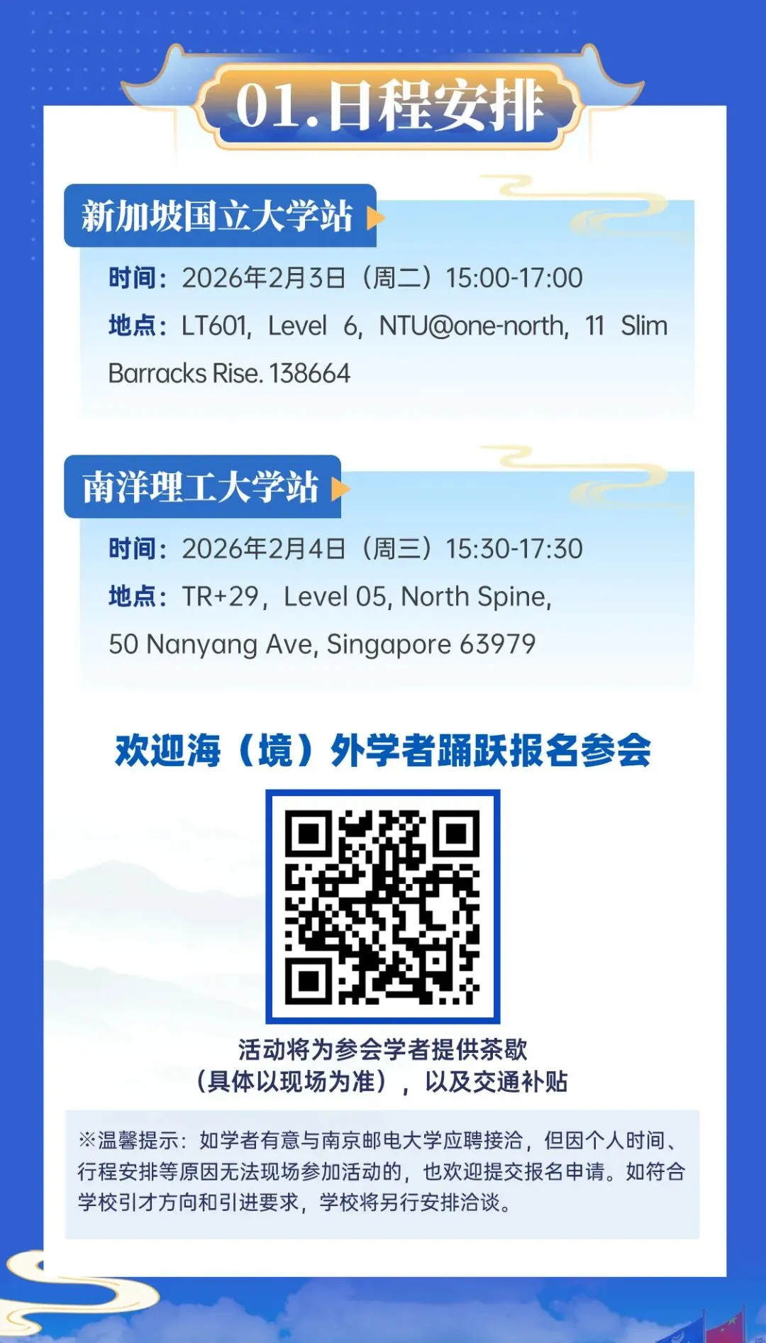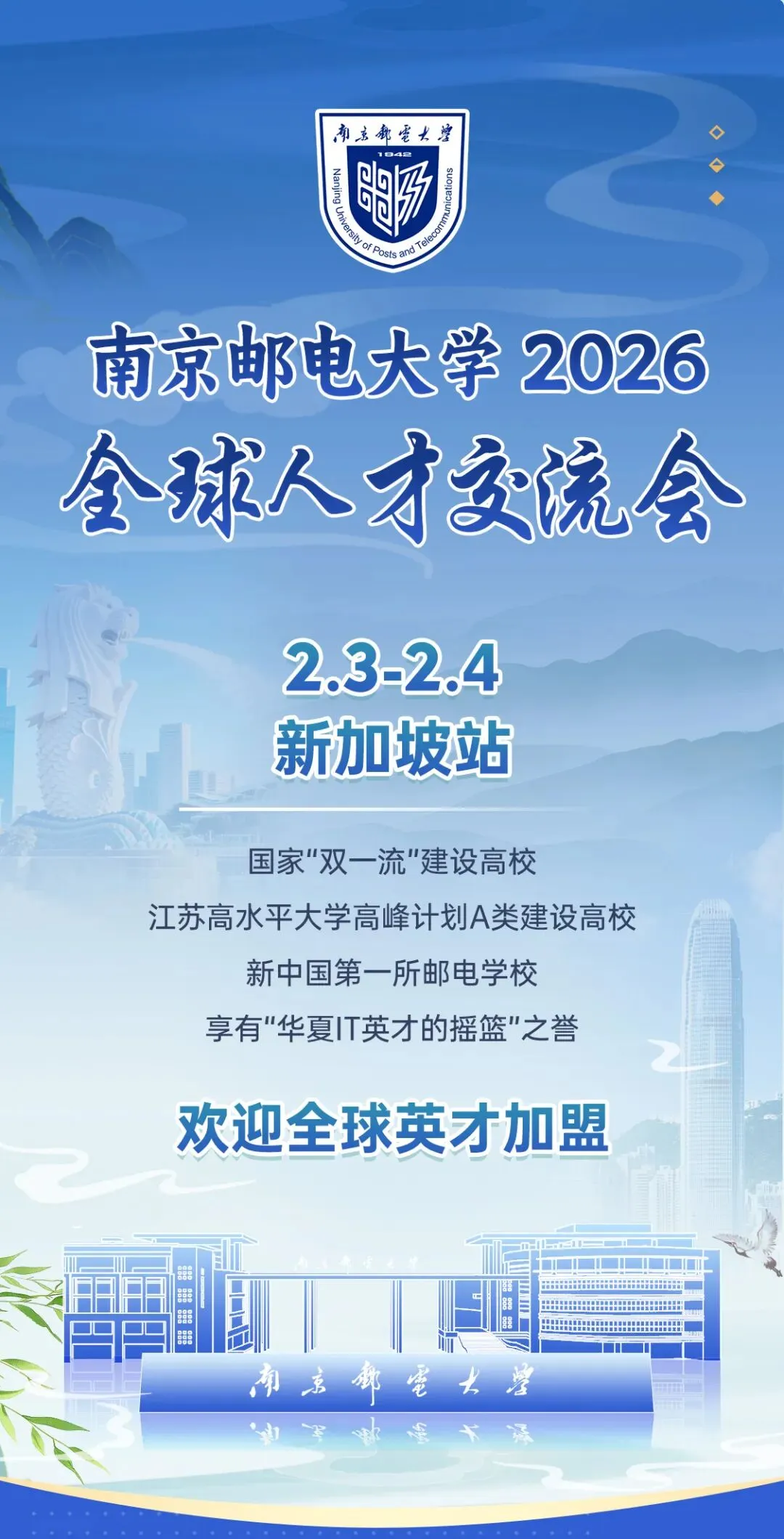 活动倒计时1天!新加坡站丨南京邮电大学2026全球人才交流会,诚邀学者报名参会