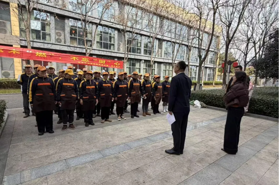 为进一步强化我院食堂消防安全管理,切实提升食堂工作人员的应急反应与火灾初期处置能力,2026年2月2日下午,在安保科的协助下综合保障科食堂组织全体工作人员开展了一场注重实效的油锅起火安全专项演练。本次演练旨在通过“理论+实操”相结合的模式,巩固安全知识,规范处置流程,筑牢食堂安全运营的“防火墙”。叶正生副院长、相关部门负责人现场观摩并参与了演练活动。