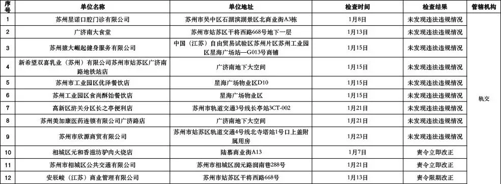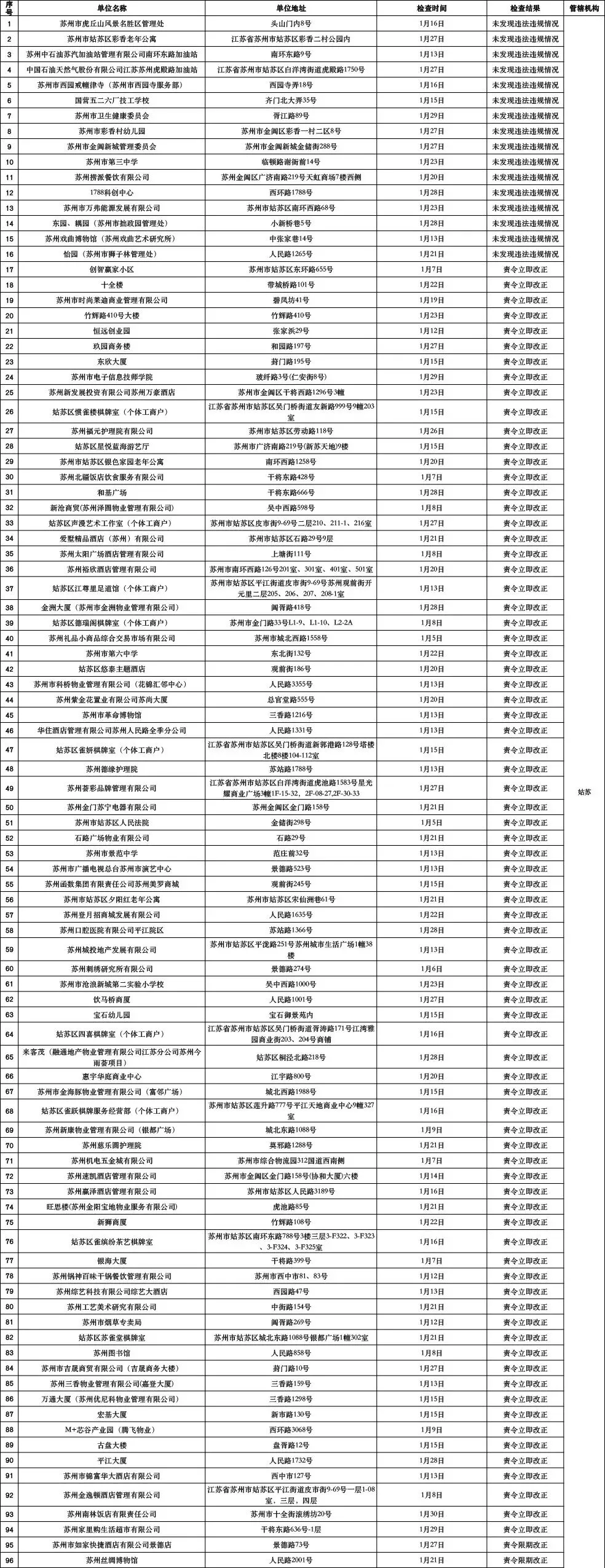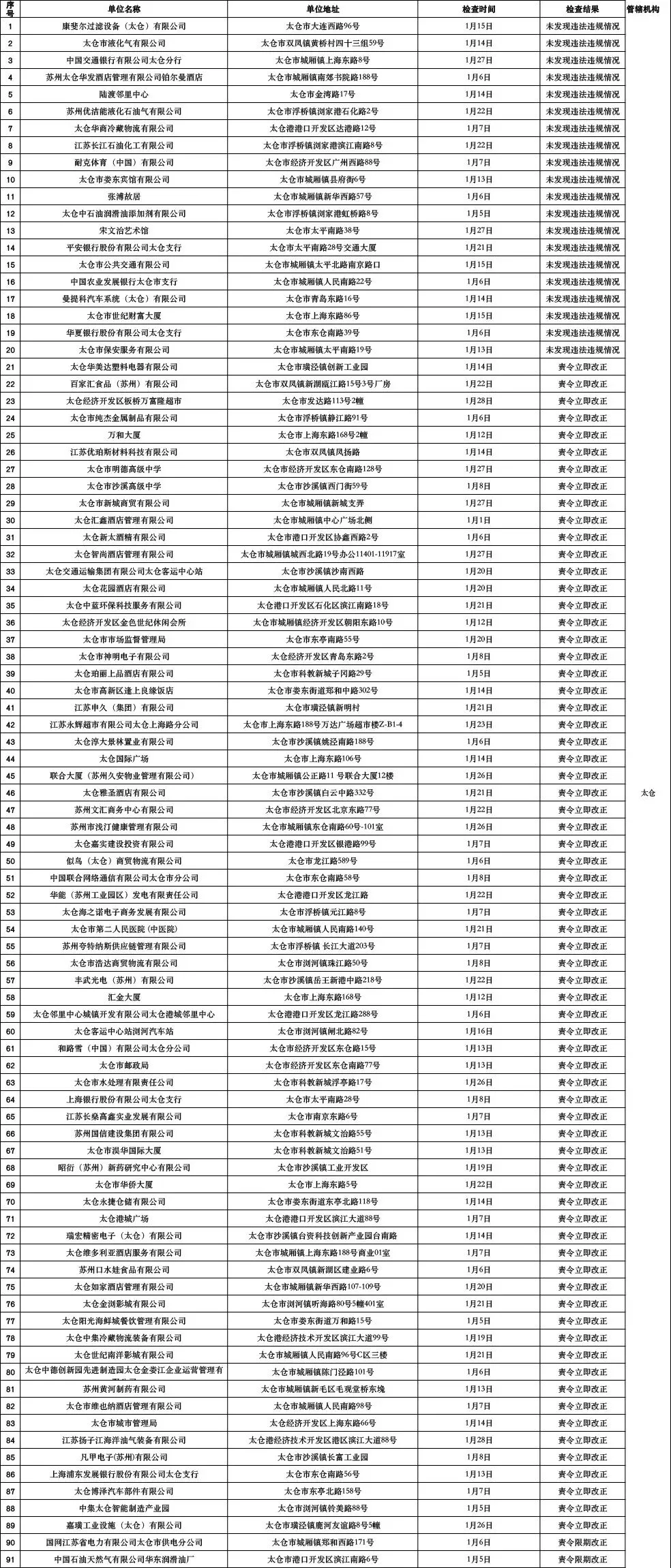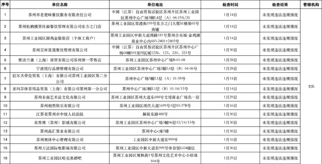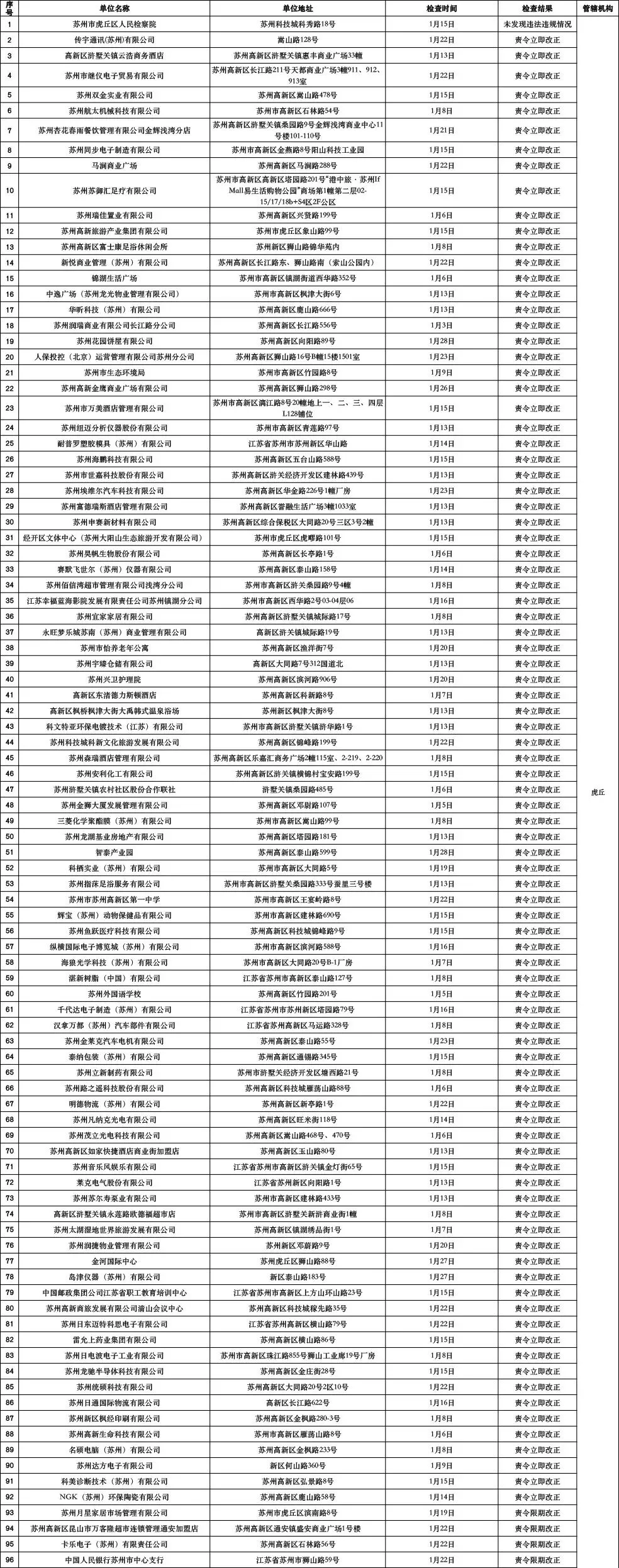 根据《中华人民共和国消防法》和应急管理部消防救援局《关于全面推行“双随机、一公开”消防监管工作的通知》的规定,苏州市消防救援支队决定对1月份抽查结果进行公示,请相关单位认真遵守消防法律法规,广泛运用“微消防”平台开展自查自纠,落实消防安全主体责任。