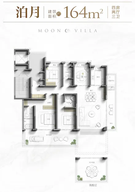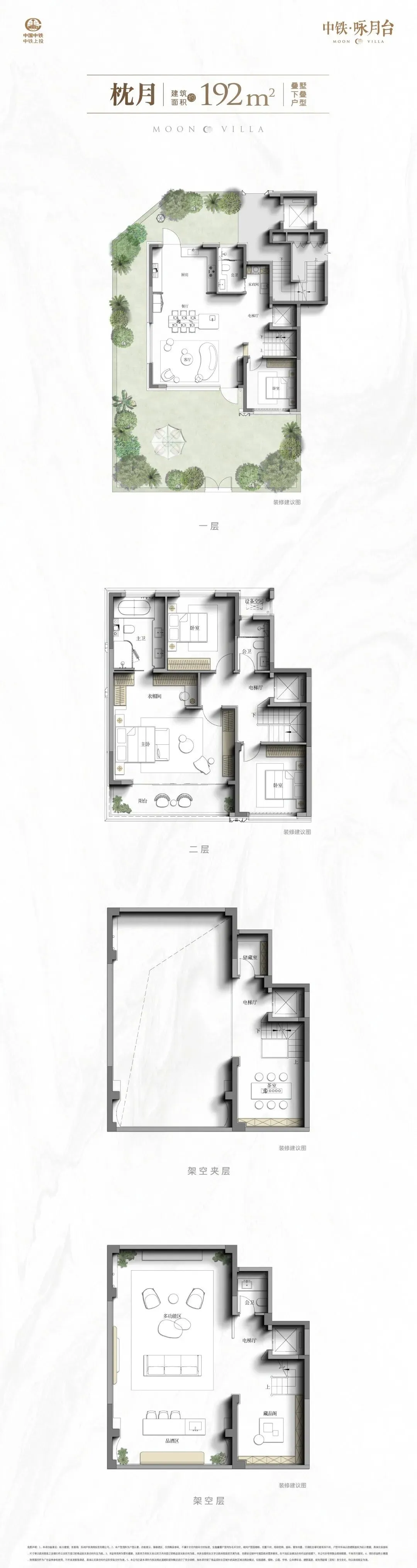 下叠(约192㎡):拥有约9.4米南向面宽和私属独立庭院,将墅居的仪式感拉满。
