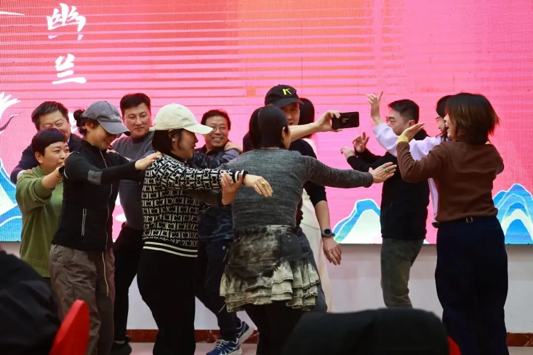 精彩的环节轮番上演,现场气氛持续升温。幽兰独舞的表演曼妙灵动,舞者以优美的身姿点燃全场热情,更带领全体嘉宾共同起舞,整齐的舞步、欢快的节奏将现场氛围推向首个高潮,欢声笑语在渔港边久久回荡。党支部书记迟永军带来攀登珠峰的独家分享,从雪山险境到登顶荣光,每一个细节都让在场者身临其境,深刻感受登山人不畏艰险、勇毅前行的精神;曾获市级表彰的王洁女士倾情朗诵《沁园春·雪》,激昂的语调、饱满的情感,将诗词的豪迈与登山人的壮志完美融合,赢得满堂喝彩;常务副会长刘德生与史益林联袂分享百公里戈壁徒步的经历,漫漫戈壁中的坚持与协作,让大家体会到户外探索中团队的力量与坚守的意义。