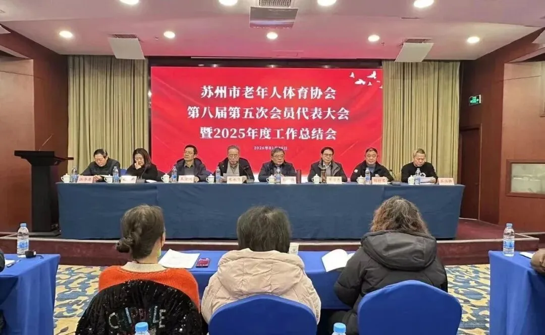 1月29日上午,苏州市老年人体育协会第八届第五次会员代表大会暨2025年度工作总结会议在苏州三元宾馆召开。会议审议通过了第八届理事会工作报告、财务和监事工作报告,修订了协会《章程》,并选举产生了第八届理事会新增理事、副会长单位和理事单位,并对慈善捐赠、老年体育工作先进集体、先进个人、优秀通讯员颁发铜牌及荣誉证书。市、区老年体协、市级机关分会、第八届理事以及各专委会会员代表共100余人出席了会议。