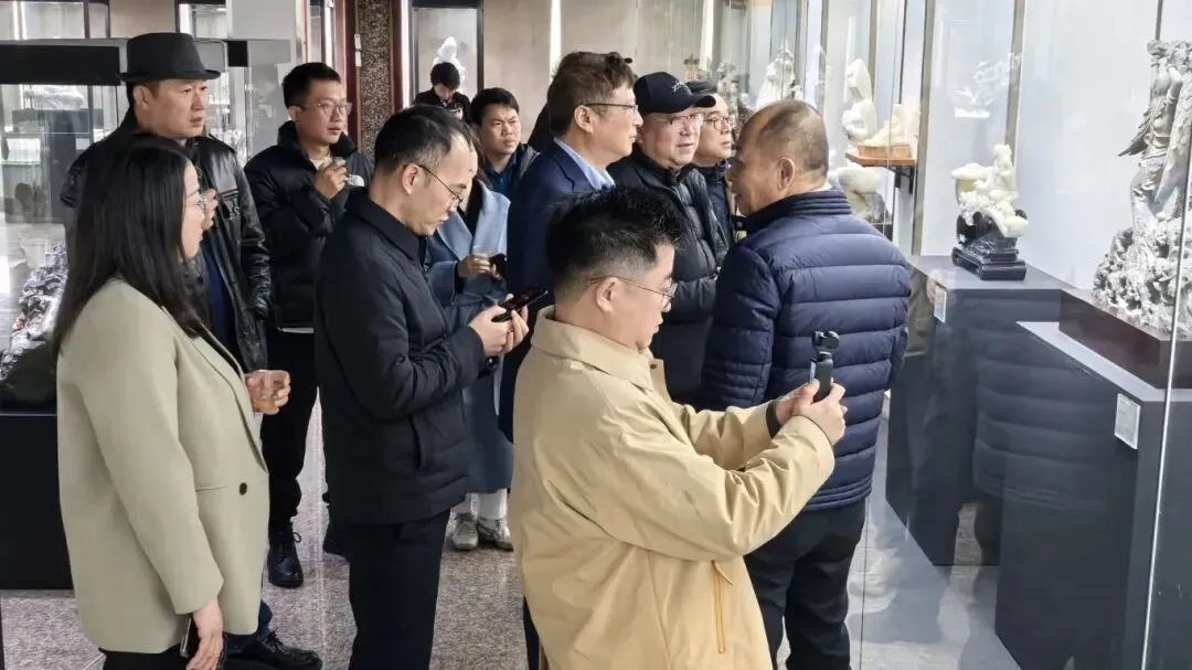 在观如十刻,调研组重点考察了石刻工艺在当代美学场景中的应用。展厅内,一系列温润如玉的石制器皿与家居装饰品错落有致。王经民主任介绍道,石雕正逐步由“重”转“轻”,向空间美学延伸。传统石雕艺术与现代生活美学结合的方向,正是艺术设计赋能传统产业的成功典范。