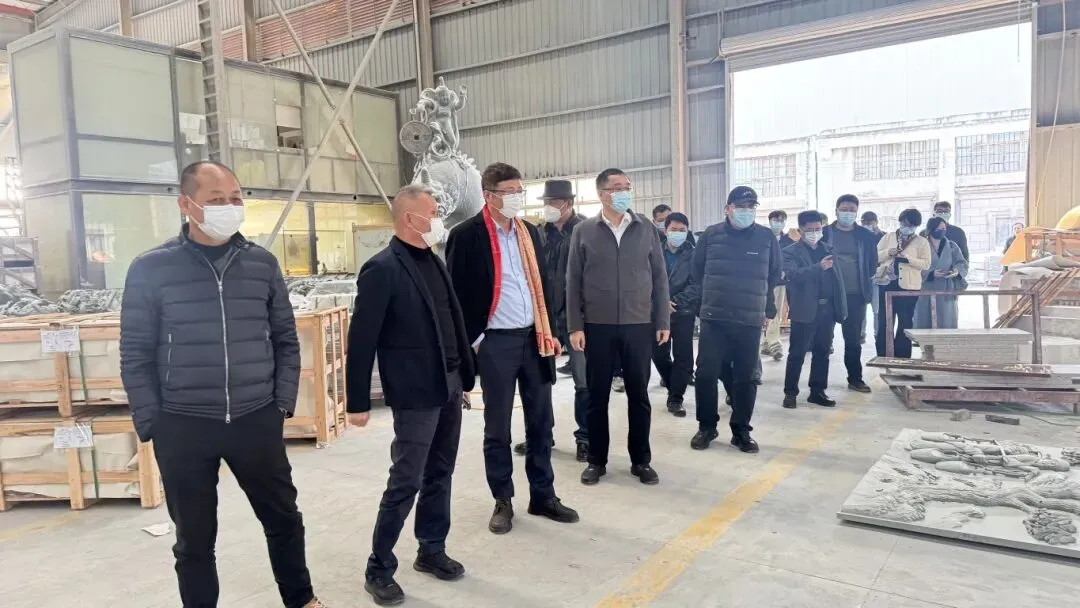2026年1月28日,苏州工艺美术职业技术学院党委书记范卫东、副校长李秀霞一行莅临“世界石雕之都”惠安开展考察调研。惠安县委常委蒋舒翔、组织部长王紫钊、惠安县城镇集体工业联合社主任林振森及相关部门负责同志陪同调研。石雕专委会主任王经民参与对接并做产业推介,共同探讨校地合作与石雕产业高质量发展之路。