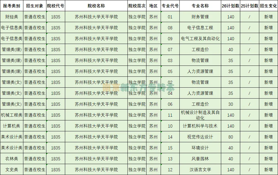 2026 年苏州科技大学天平学院招生计划已正式公布,关注苏州科技大学天平学院招生计划的考生,一定要重点留意这份苏州科技大学天平学院招生计划里的核心信号。