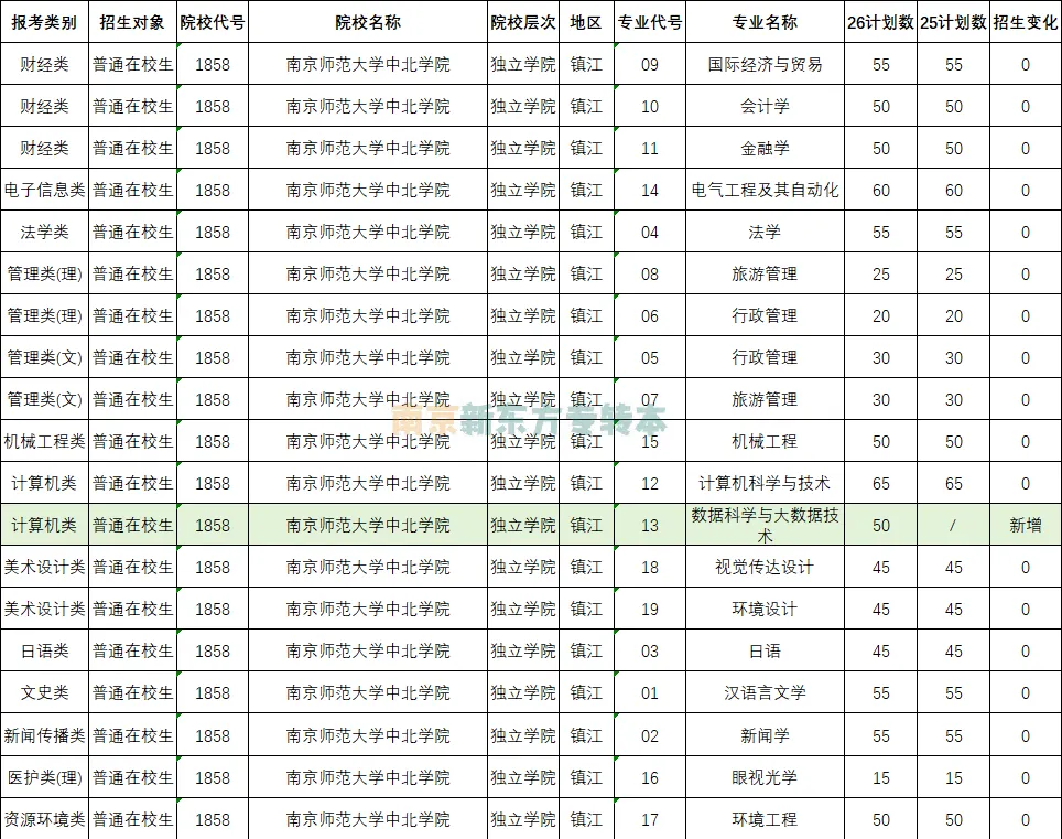 2026 年江苏专转本南京师范大学中北学院招生计划已正式公布,关注江苏专转本南京师范大学中北学院招生计划的考生,一定要重点留意这份江苏专转本南京师范大学中北学院招生计划里的核心信号。